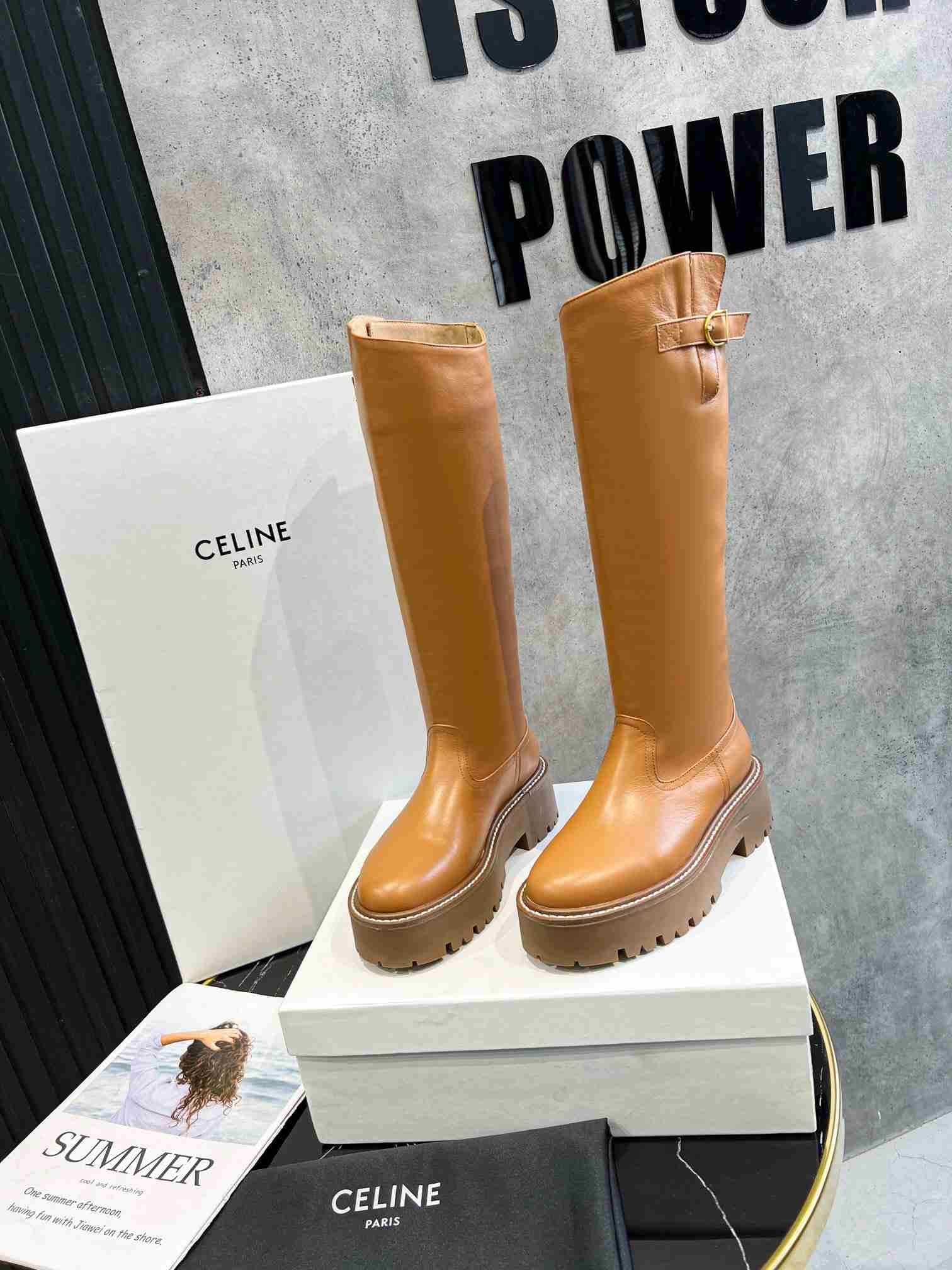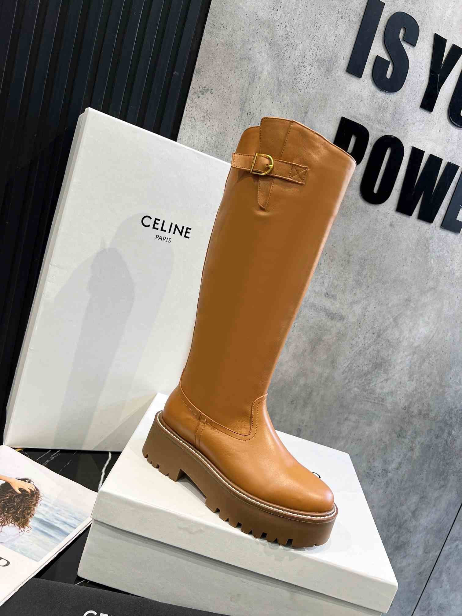 Celine Bulky 女式棕色高筒靴