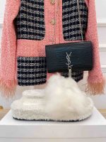 Celine Clea Triomphe 女式毛皮白色拖鞋
