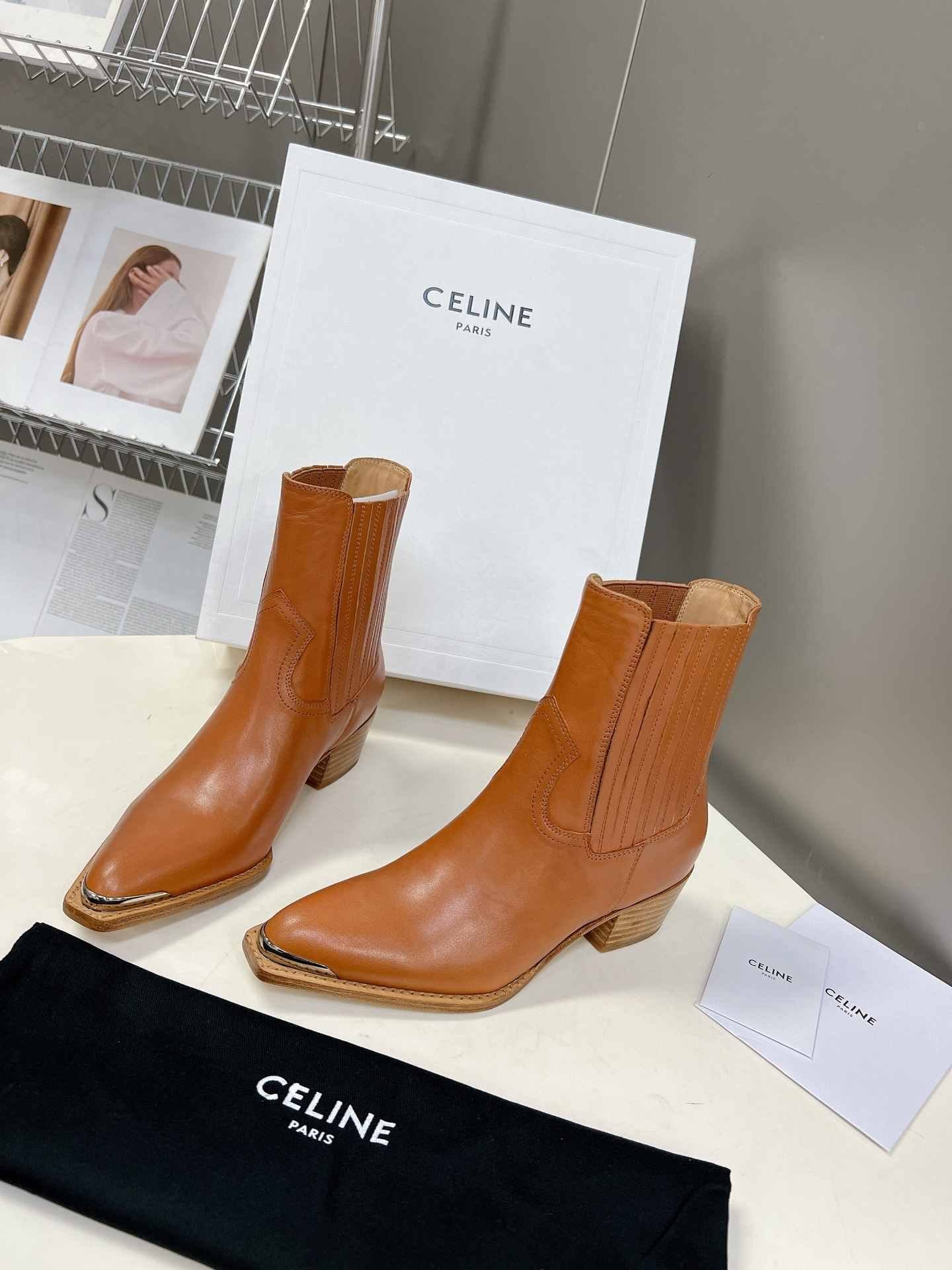 Celine Cruiser 靴子金属鞋头切尔西靴棕色