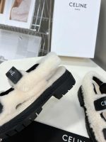 Celine Leo 女式毛皮光滑黑色 Scrap 凉鞋