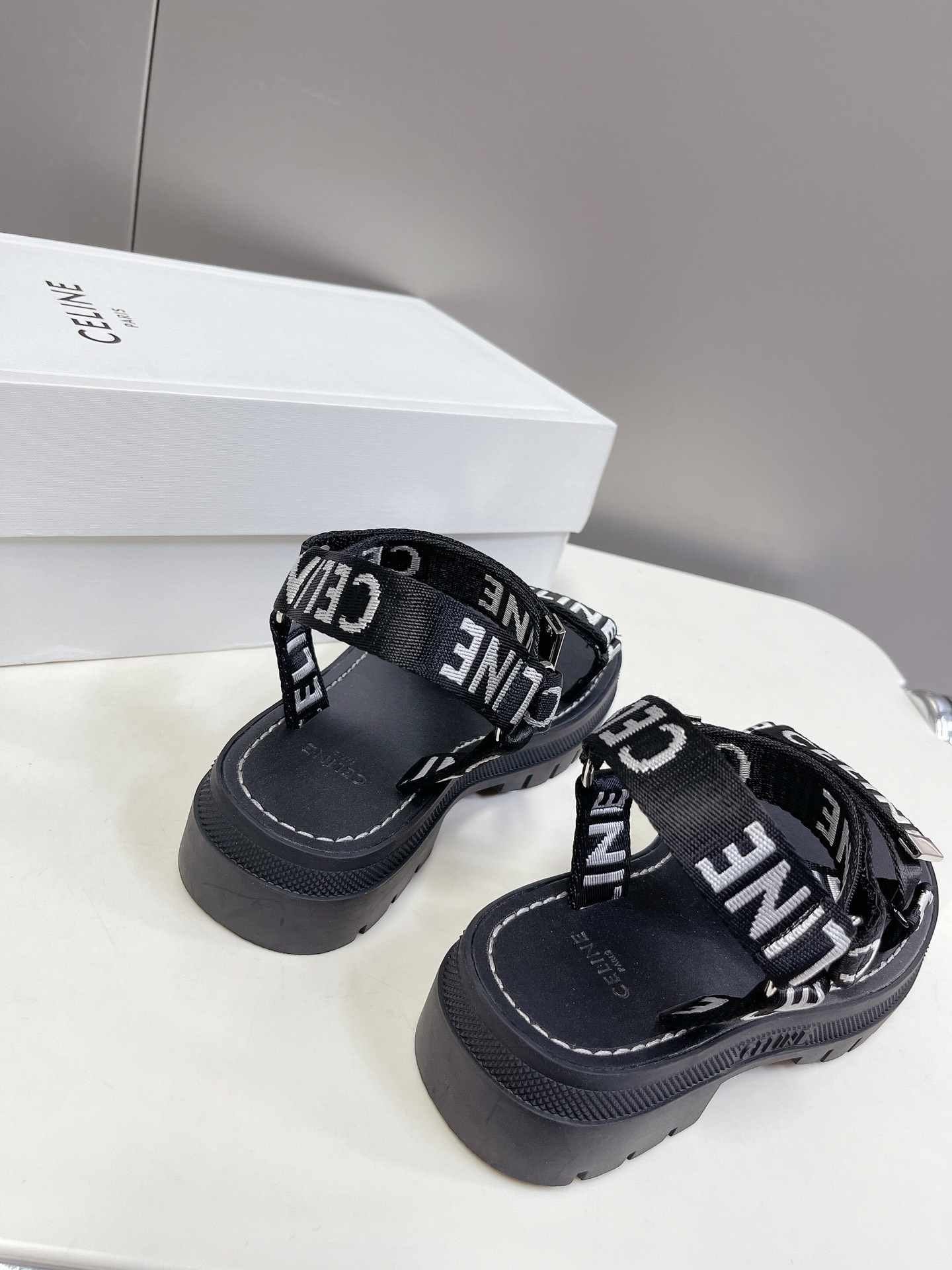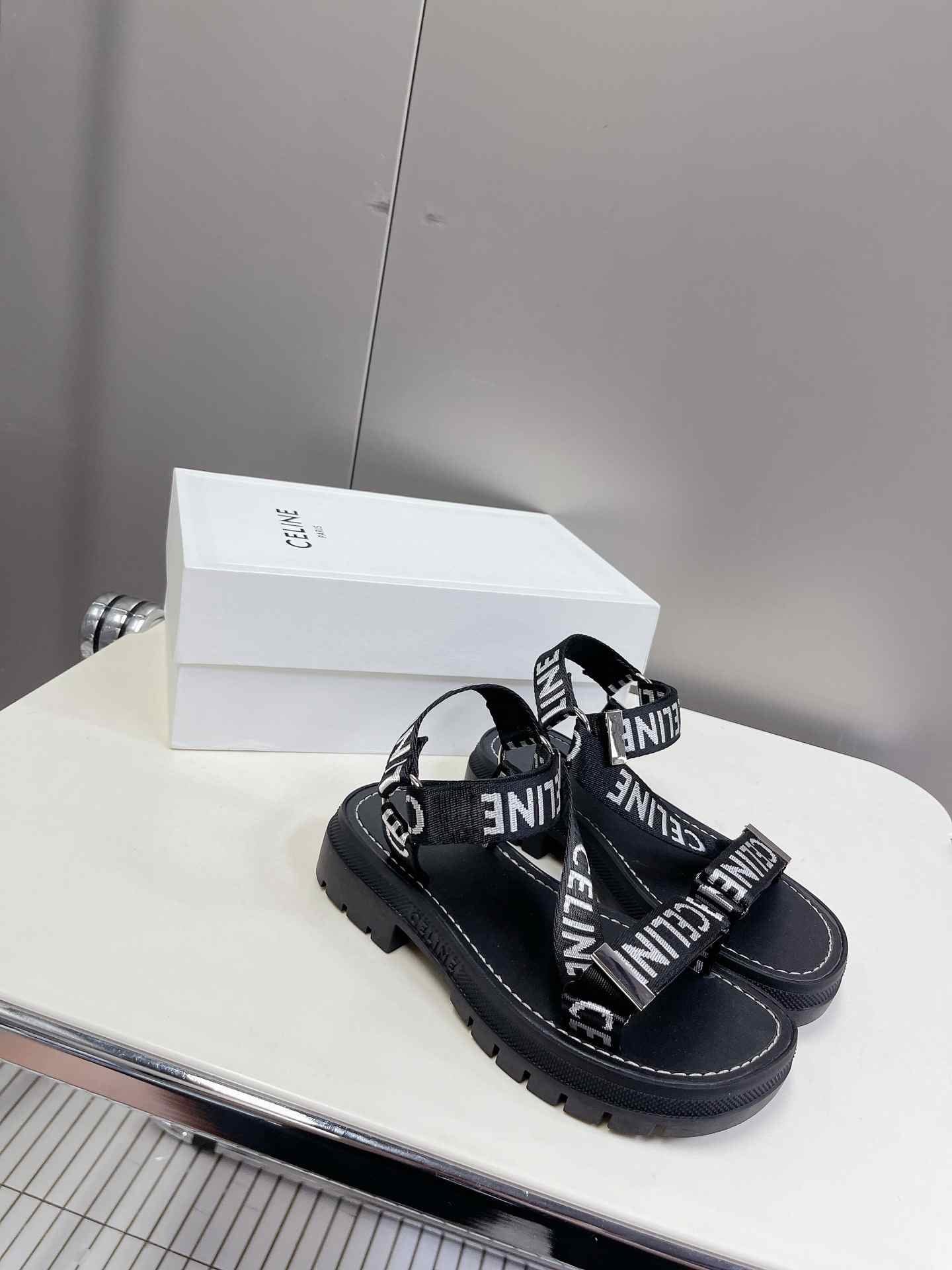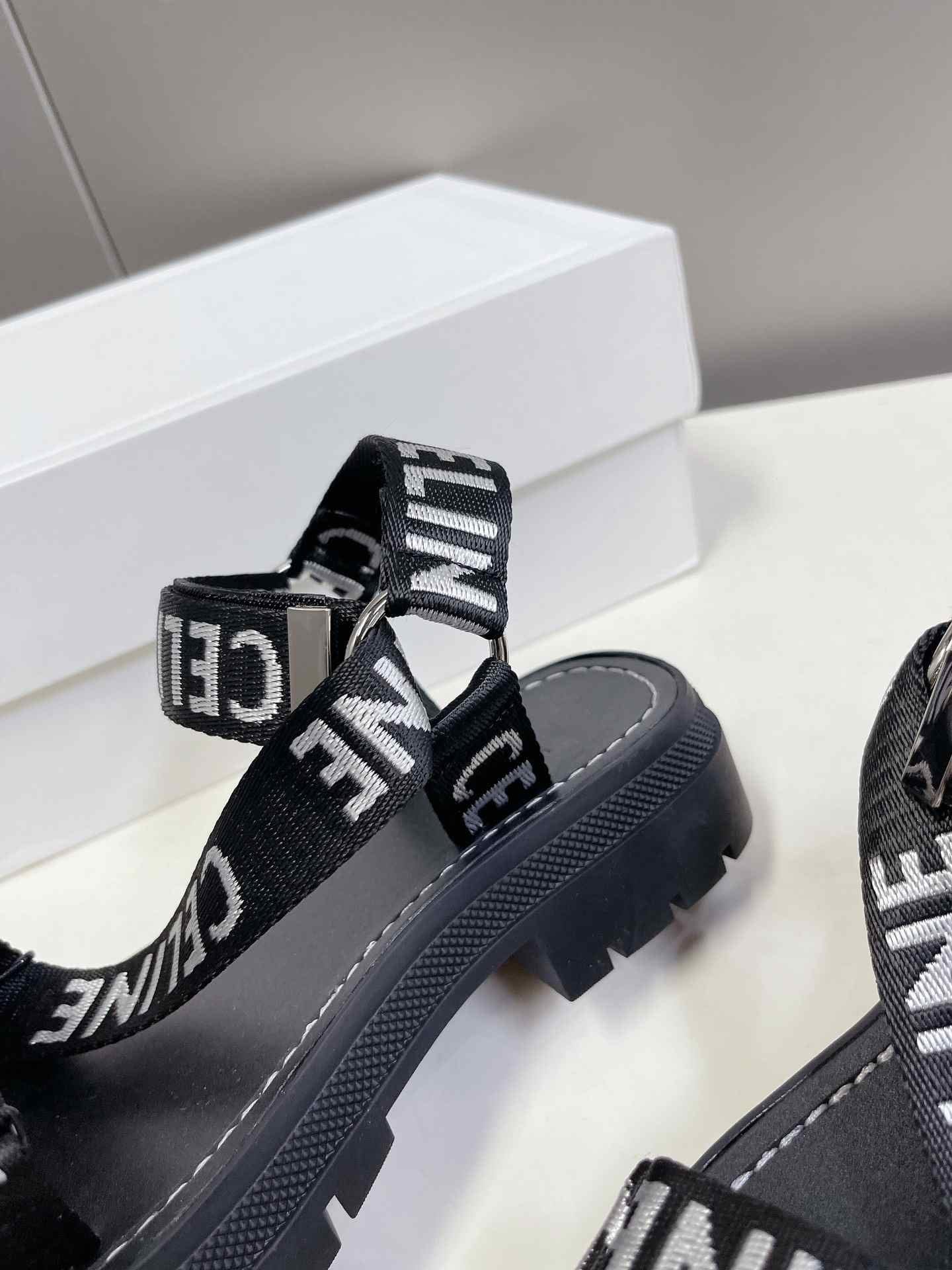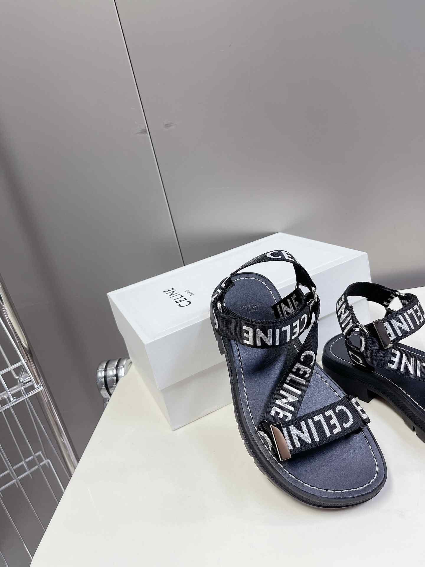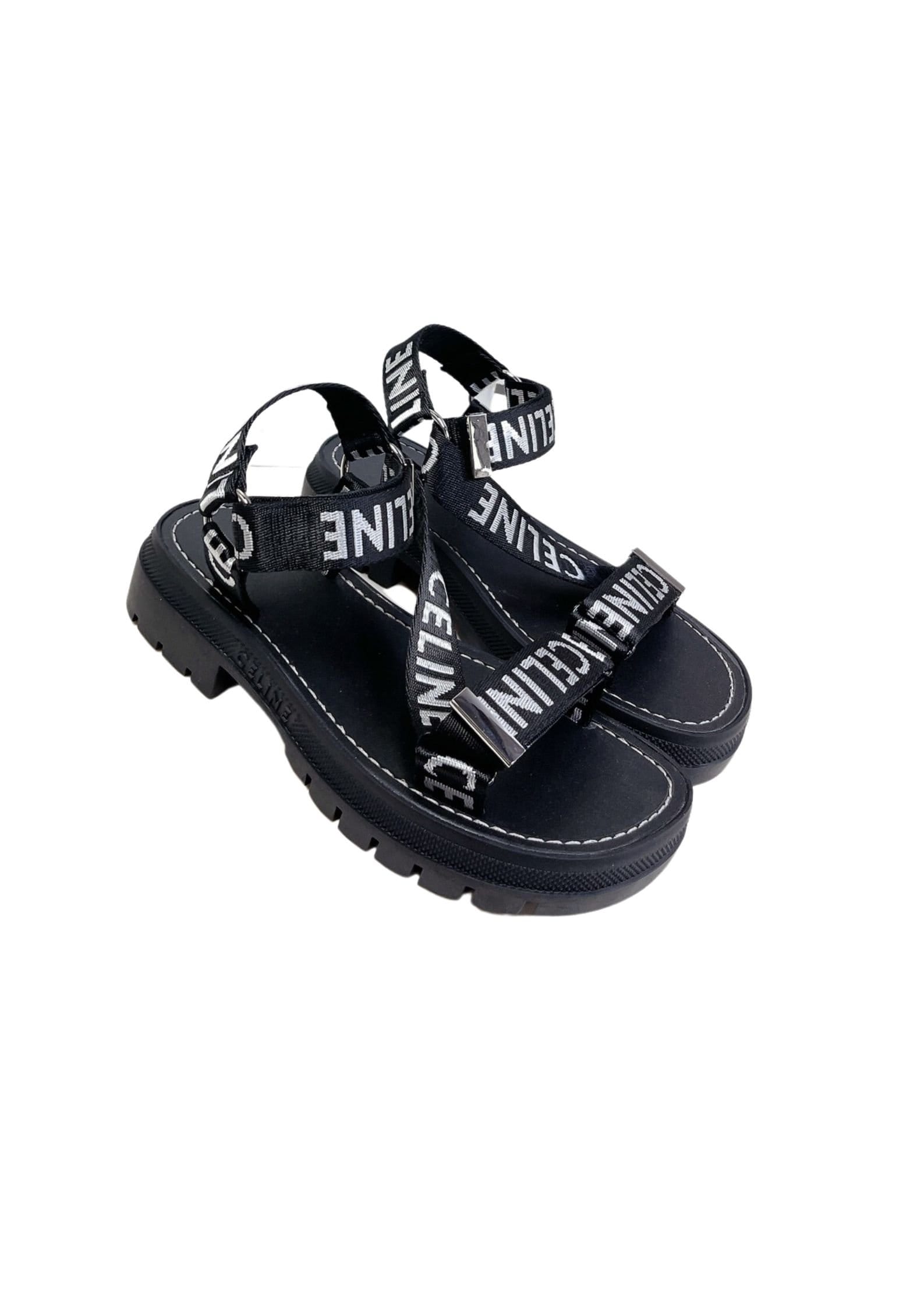 Celine Leo 系带凉鞋,搭配“Celine”提花黑色 – 345672208C.38AW