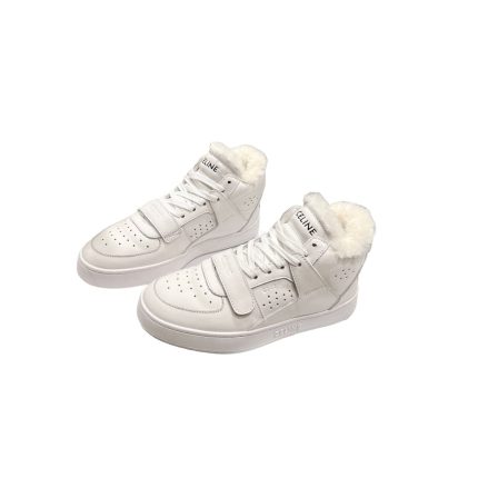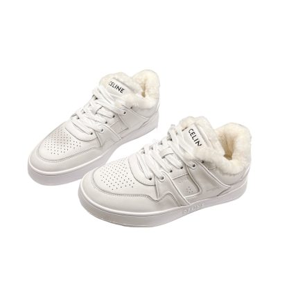 Celine Trainer 女式毛皮黑色低系带运动鞋