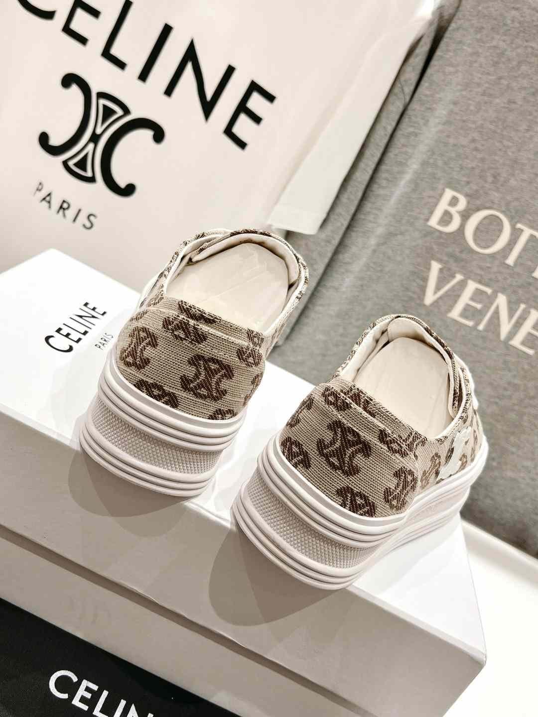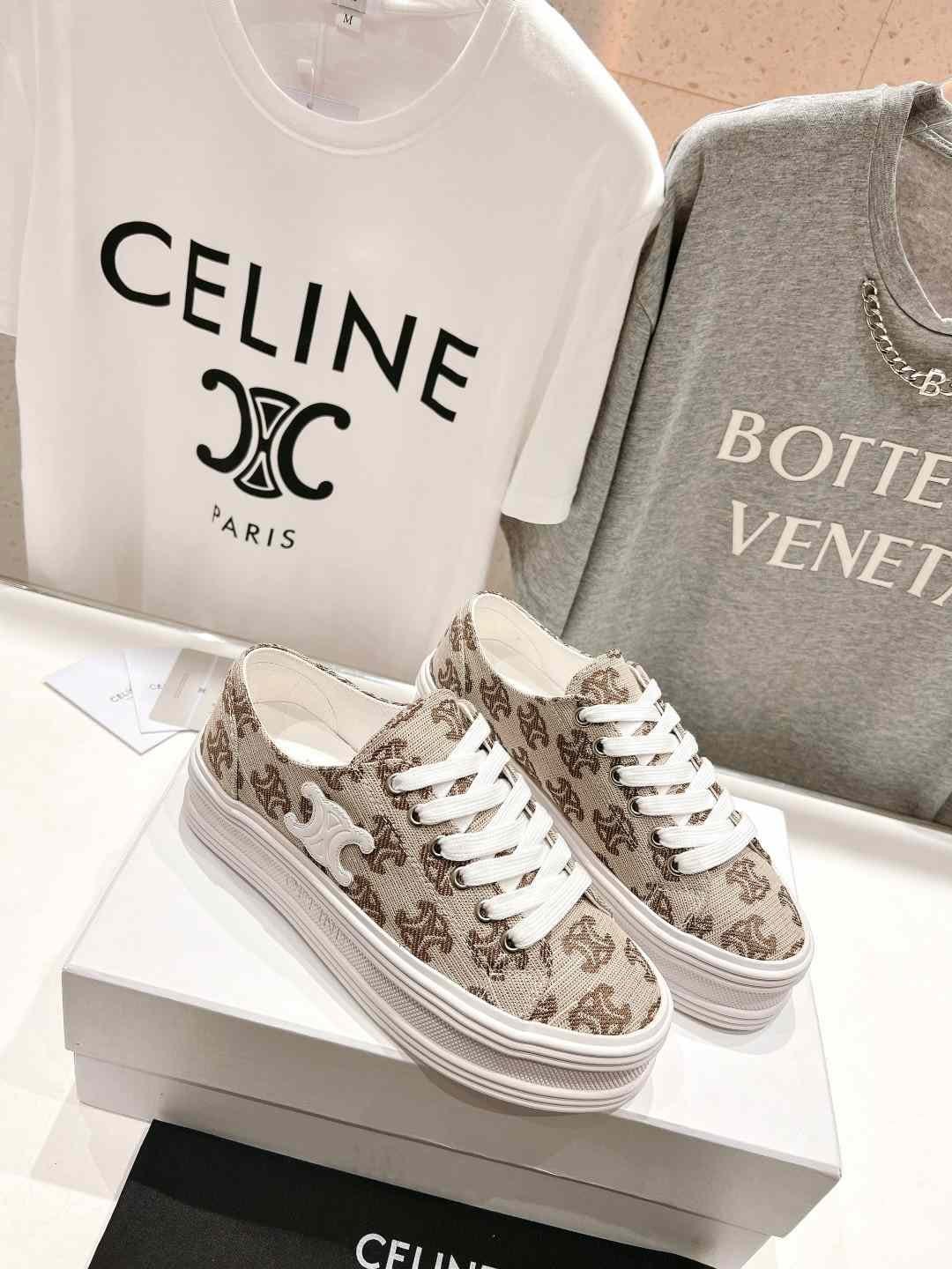 CELINE Triomphe 女式米色帆布运动鞋