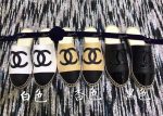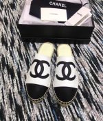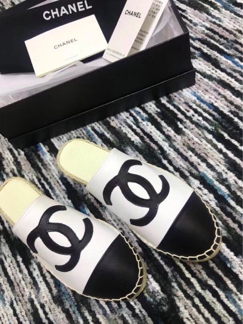 Chanel 女式穆勒草编拖鞋白色/黑色,女鞋