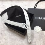 Chanel 腰带绗缝双 C 扣白色带白色五金件女士腰带