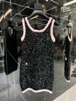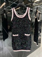 Chanel Socquin 2 String Wool Dress Black
