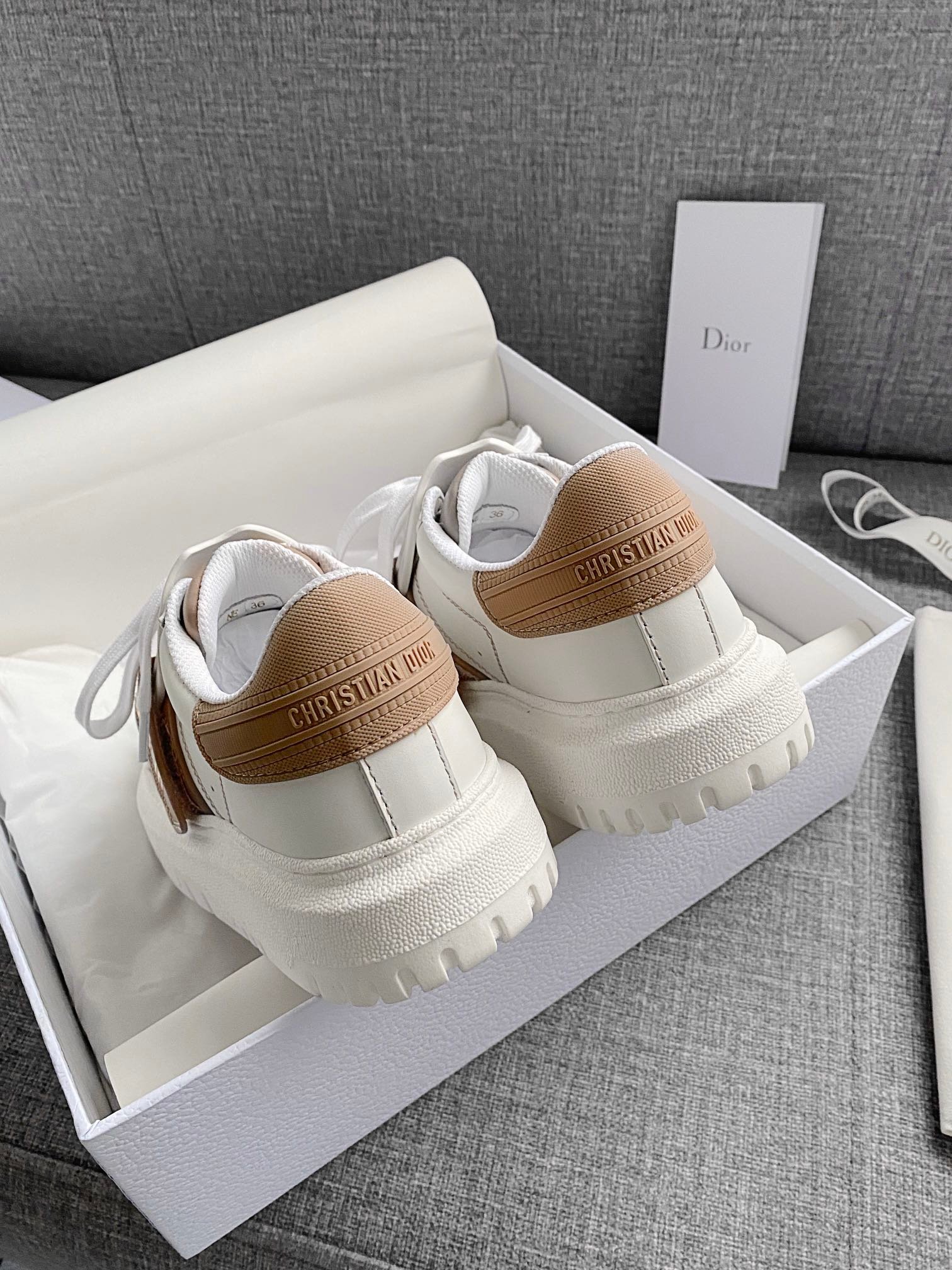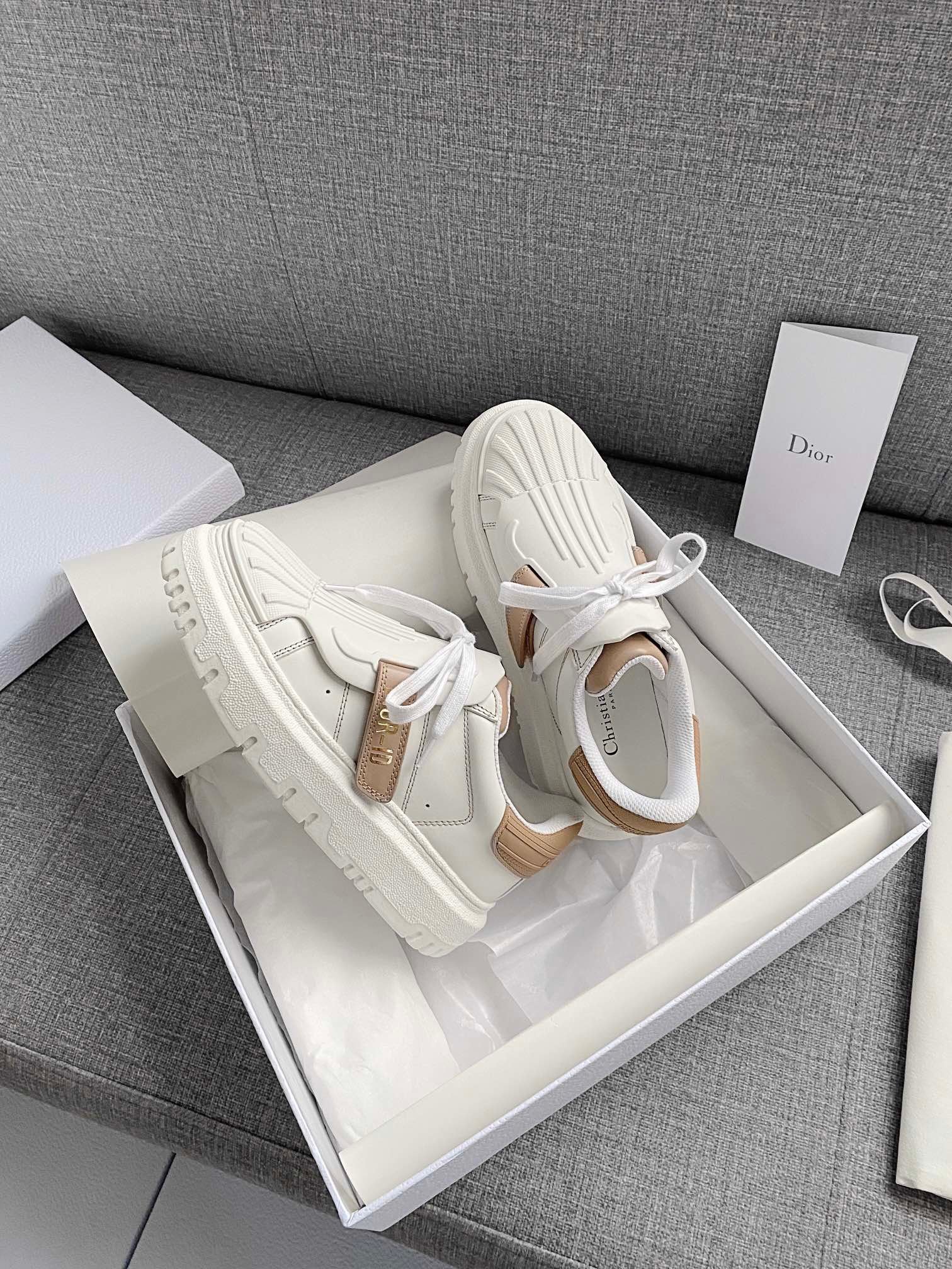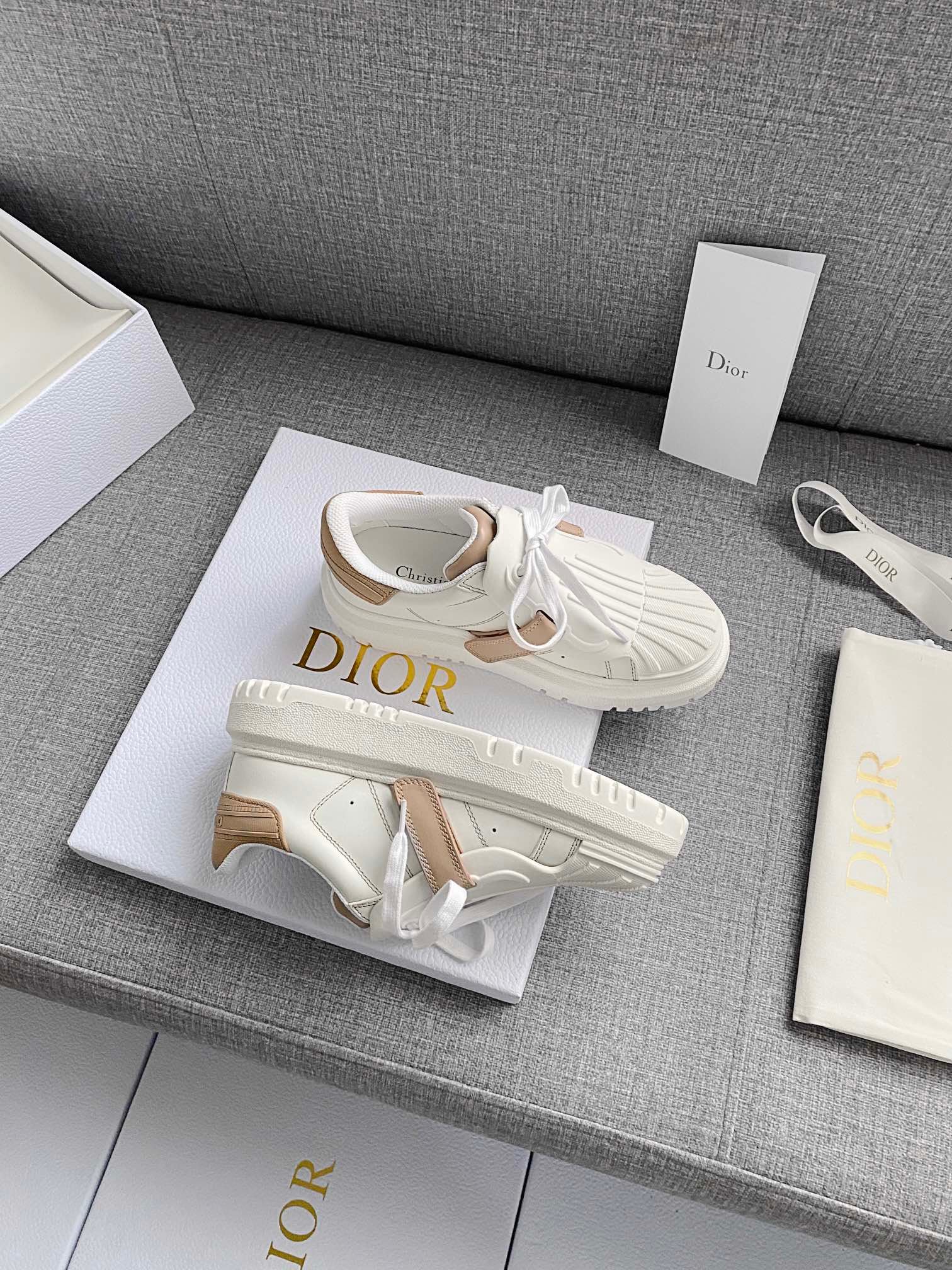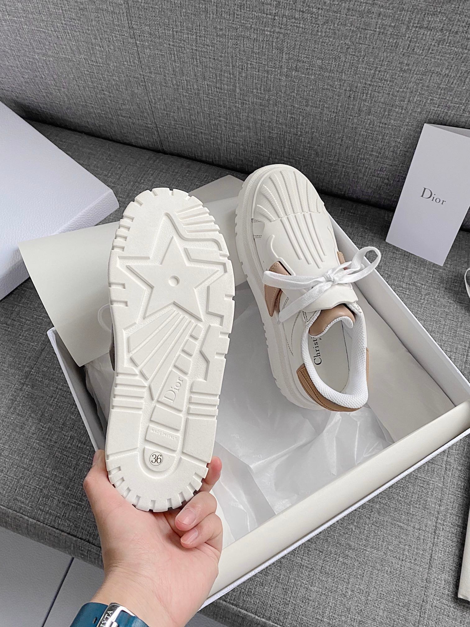 Dior 为其运动鞋系列添加了全新鞋履款式。 Dior-ID 由 Maria Grazia Chiuri 设计,采用双色调设计。为了营造干净、时尚的美感,该鞋款采用白色鞋面,并饰有彩色嵌片。表带上饰有金色时尚品牌标志,尽显奢华气质。脚趾上的五条线条使鞋子更加圆润,为鞋子的整体设计增添了质感。您可以搭配一双可爱的白色渔网袜来提升您的造型。