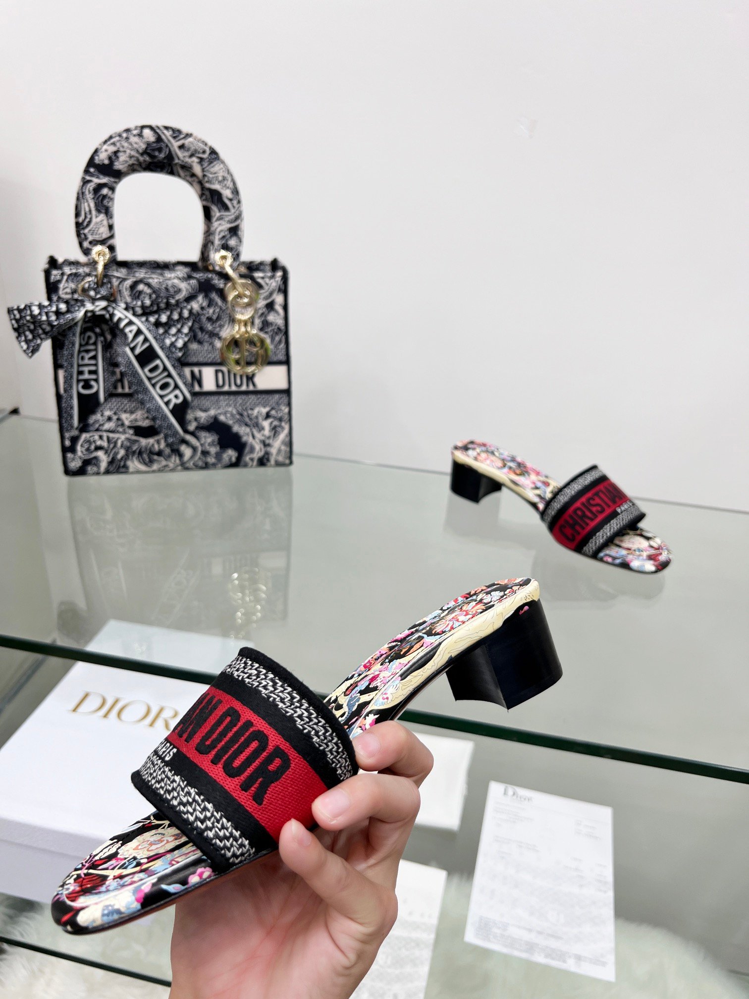 作为胶囊系列的一部分,Dway 高跟拖鞋拥有永恒的标志性轮廓,并突出了品牌标志性的 Toile de Jouy 图案。鞋面绣有“CHRISTIAN DIOR”签名,使其成为一款引人注目的单品。这款拖鞋采用 4 厘米(1.5)粗跟设计,可为任何造型增添现代气息,并可与其他 Dioriviera 作品搭配。