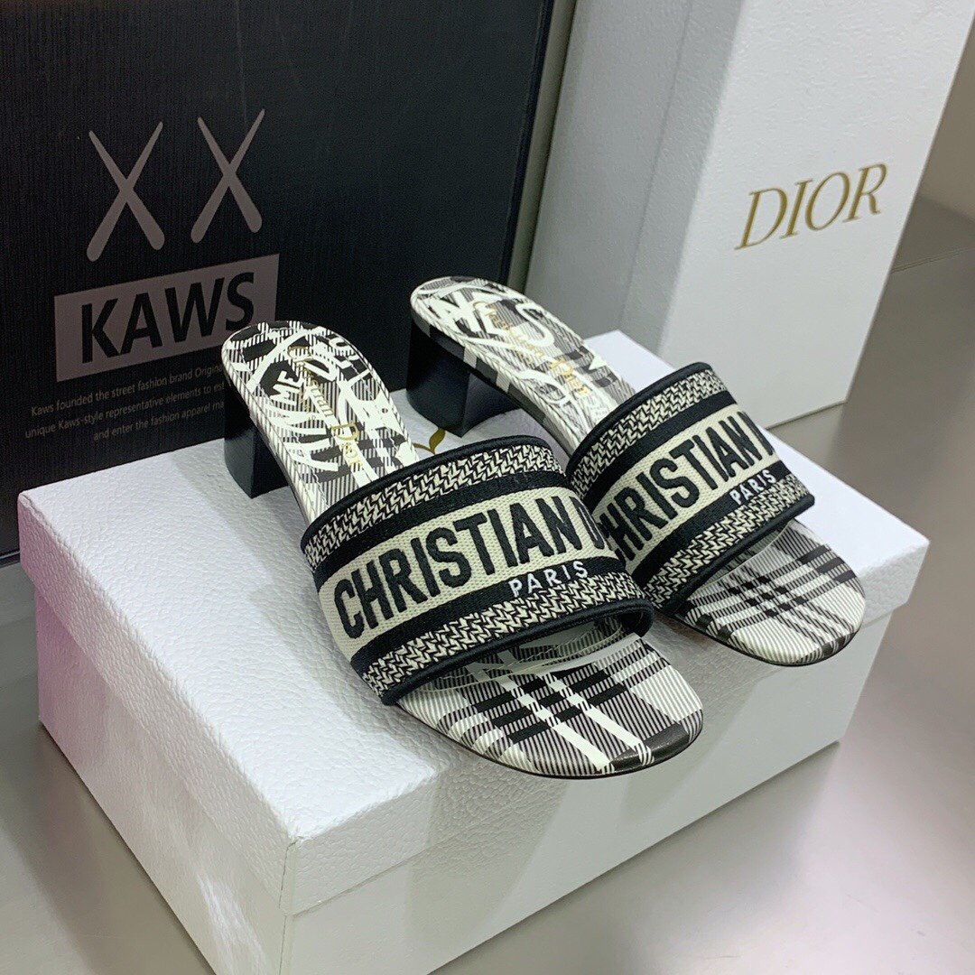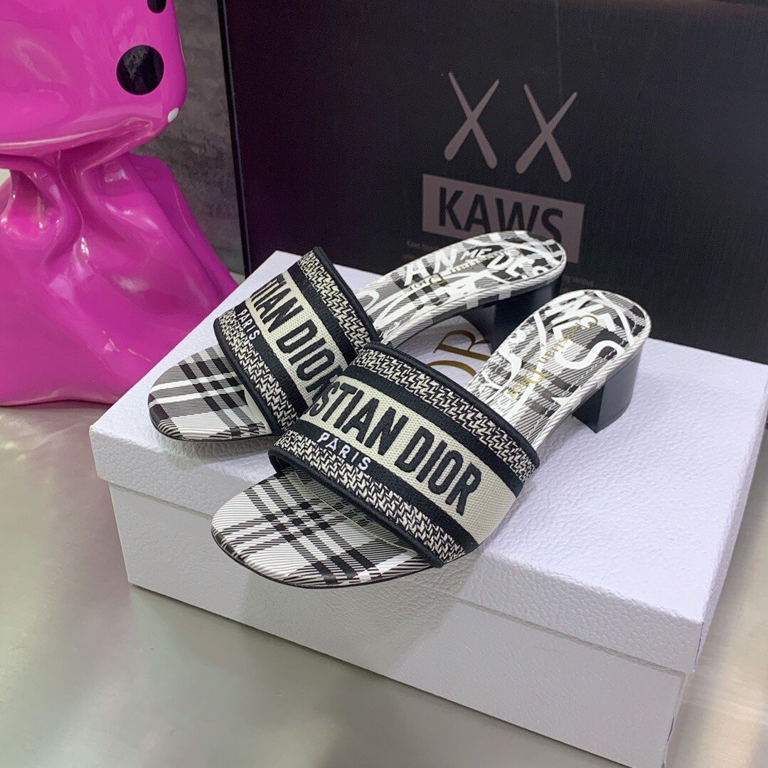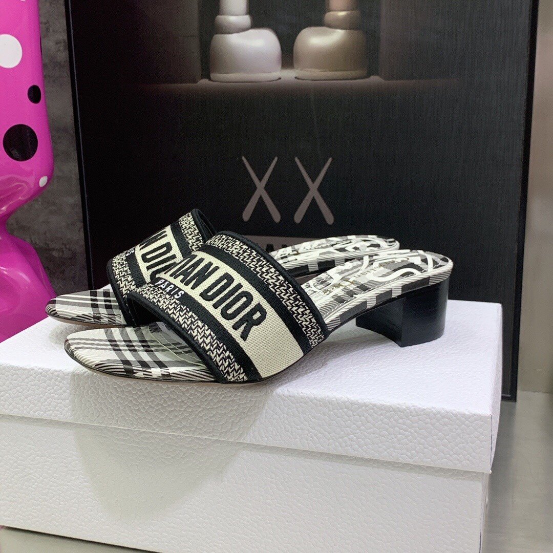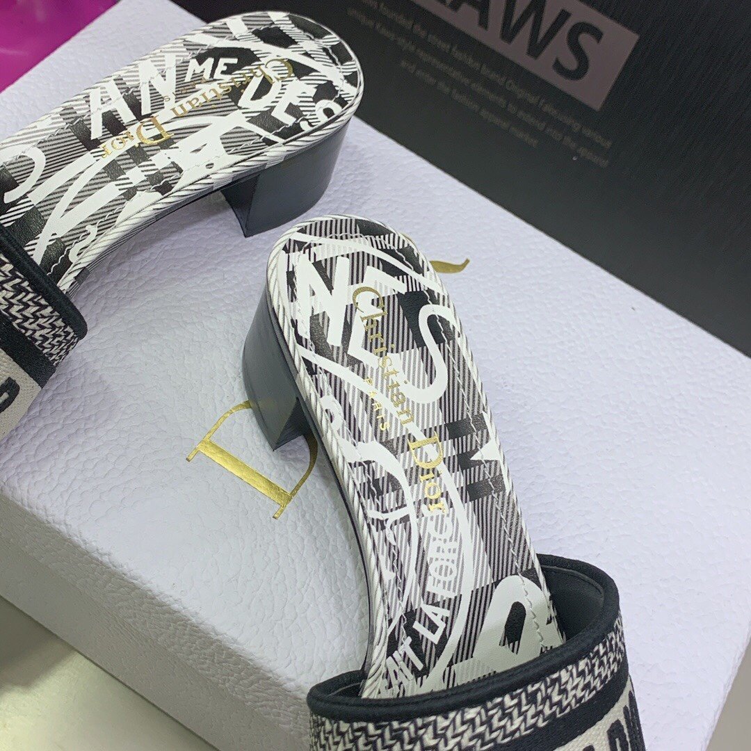 Christian Dior 女士 Dway 高跟拖鞋 黑色和白色 CD KCQ244CEE_S17X