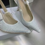 J’Adior 露跟高跟鞋是 Dior 精湛工艺的典范。尖头款式采用白色刺绣棉质面料制成,饰有银色水钻。双色刺绣“J’ADIOR”水钻丝带饰有扁平蝴蝶结,10 厘米 (4) 逗号鞋跟为晚装造型提供最后的优雅触感。