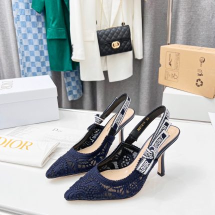 J’Adior 露跟高跟鞋是迪奥精湛工艺的典范。刺绣棉质设计与 macramE 图案相得益彰,在透明感上展现出优雅的魅力。 “J’ADIOR”刺绣丝带、蝴蝶结和 10 厘米(4)逗号鞋跟完成精致优雅的创作。