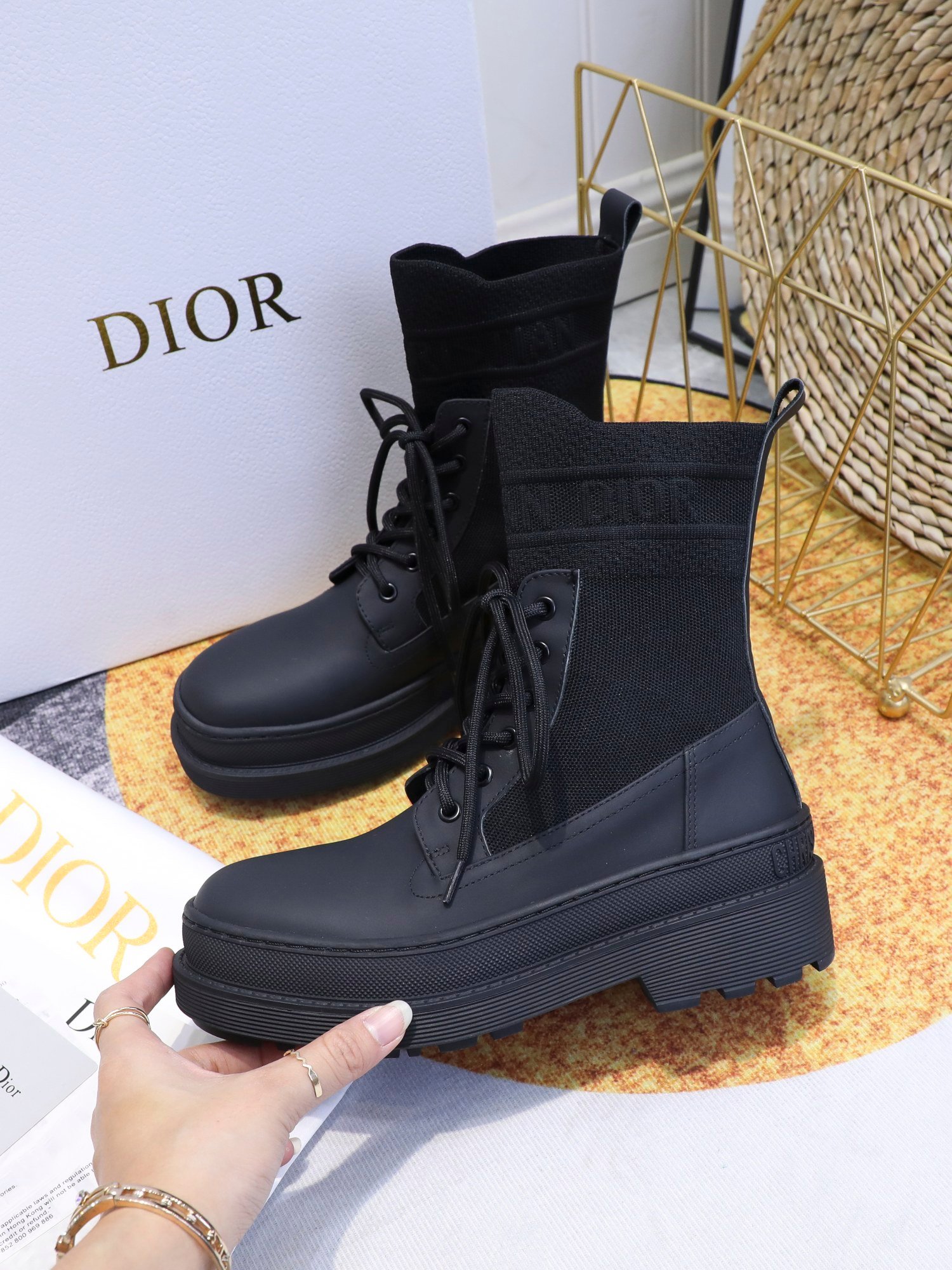 这些靴子非常适合秋冬。穿起来非常方便。鞋底附有 Dior 的好运符号星星形状。