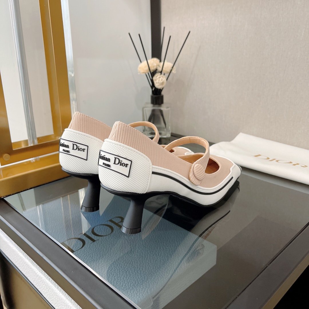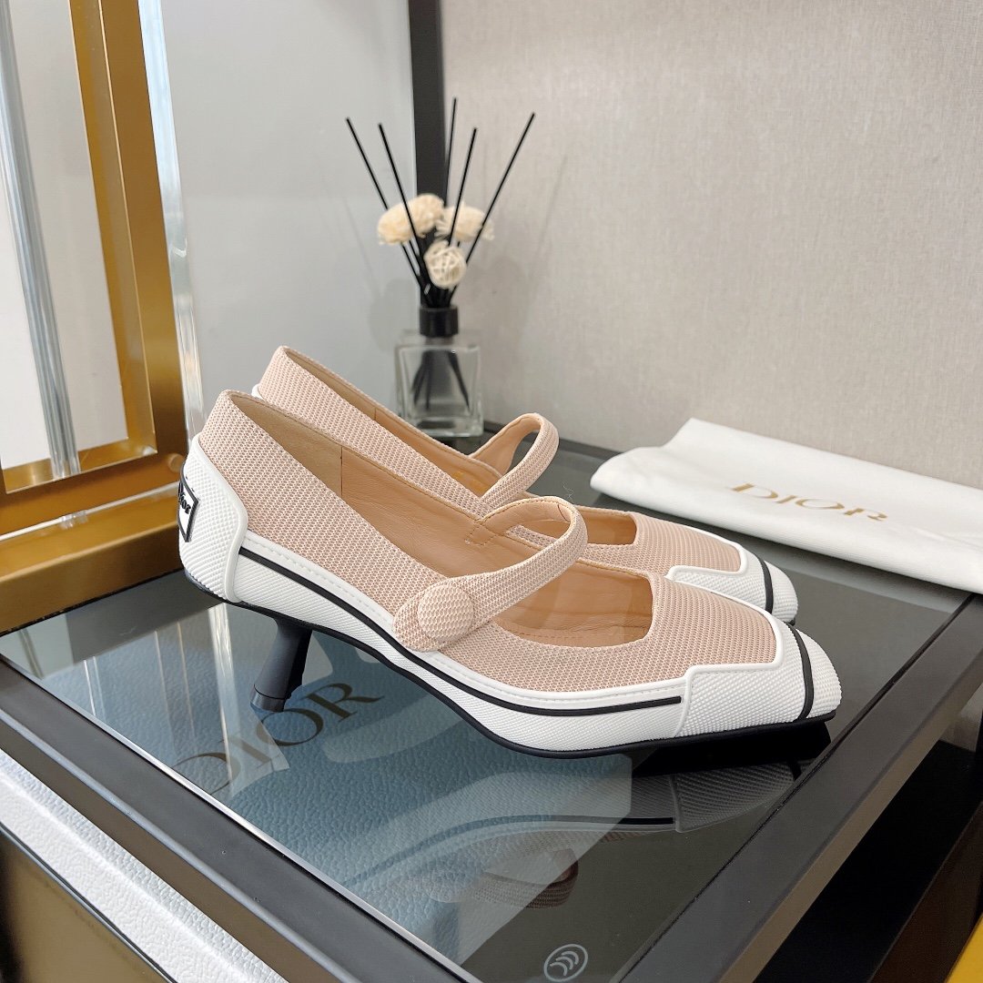 D-Motion 宫廷鞋已经是该系列的标志,在这里它以混合设计呈现,结合了优雅和运动风格。它采用纹理技术制成,其特点是鞋底和带同色系装饰纽扣的带子,以及背面的“Christian Dior Paris”签名。方头和 5.5 厘米鞋跟构成了这双现代鞋,可搭配及膝网袜。