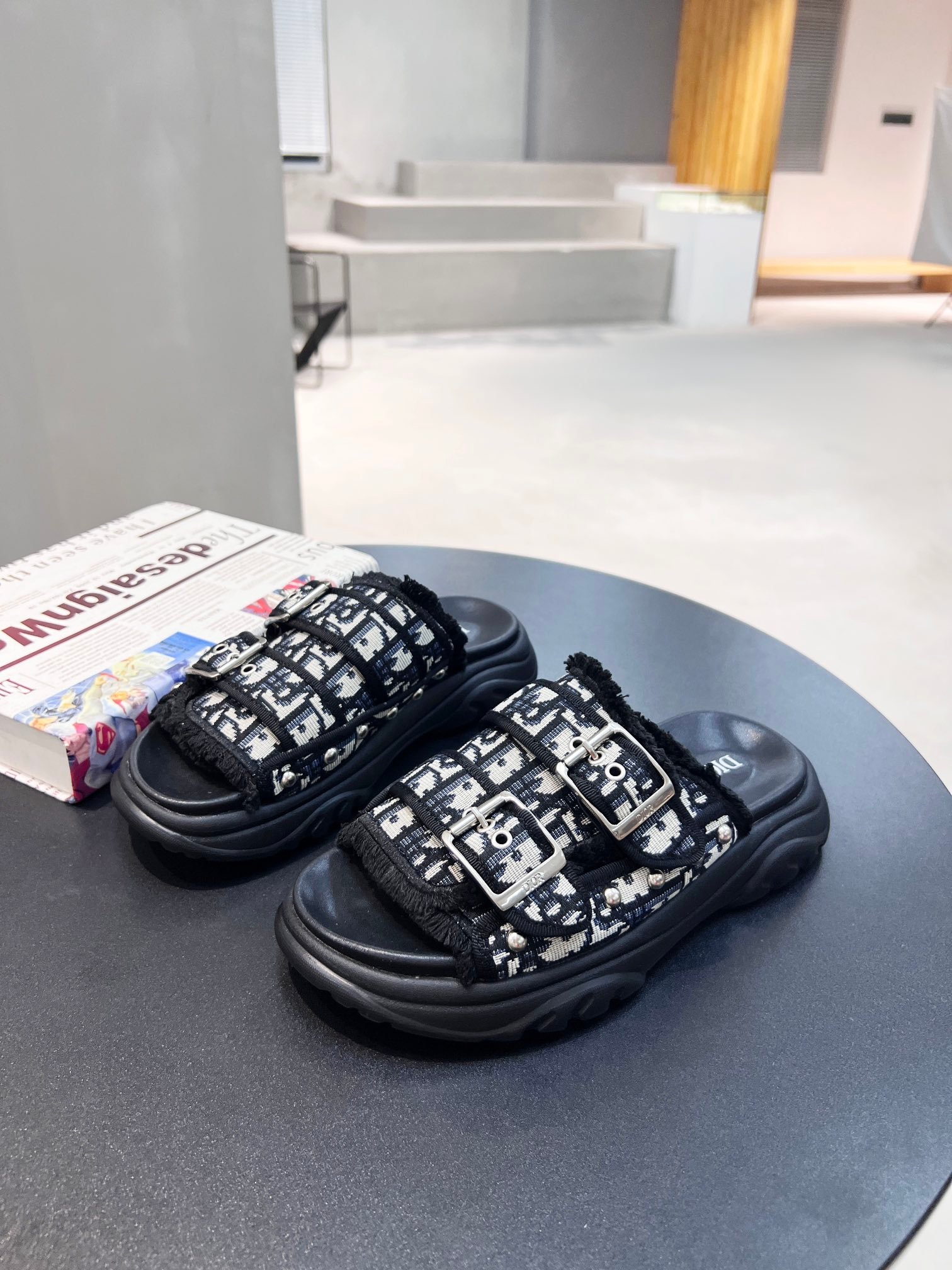 D-Wander 拖鞋是运动鞋和凉鞋的混合设计。轻盈舒适的鞋底配有防刮带,运动线条营造出轻松的感觉。鞋面的迷彩图案和每根带子上的“Christian Dior”签名使外观更加完美。