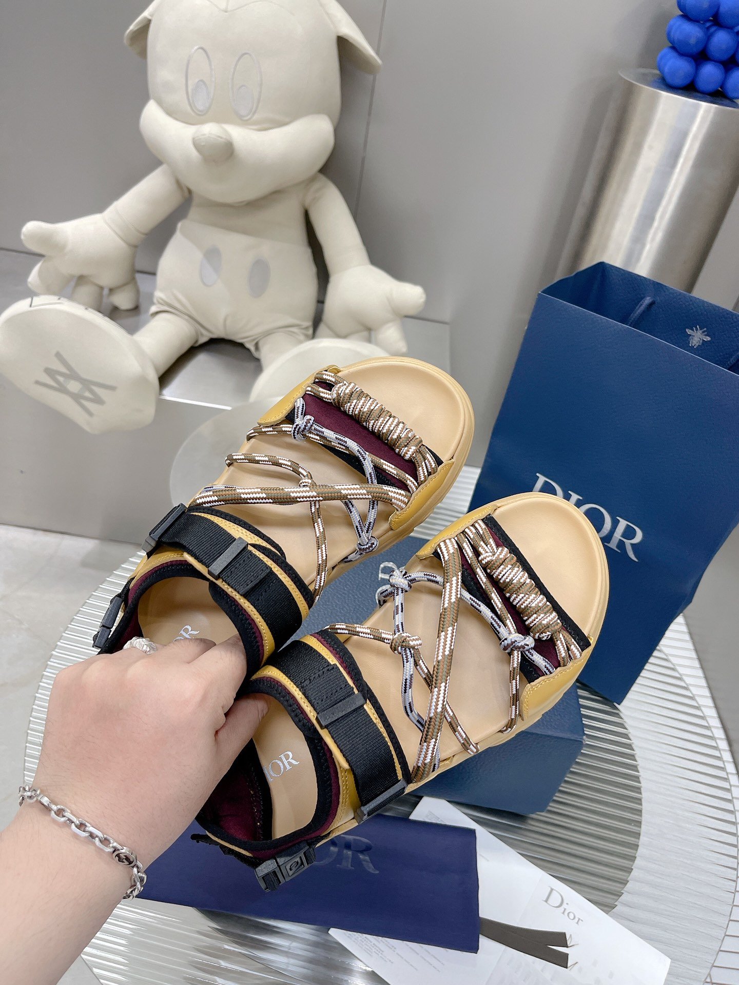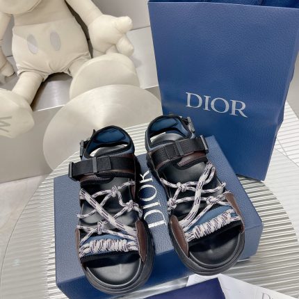 新款 Dior H-Town 凉鞋是一款混合创作,以品牌的高级定制精神为徒步宇宙注入新意。采用技术工艺精制而成,正面配有一组航海风格的实用线,凸显了其技术吸引力。超轻外底、可调节带子和斜体“DIOR”标志使整个风格更加完美。