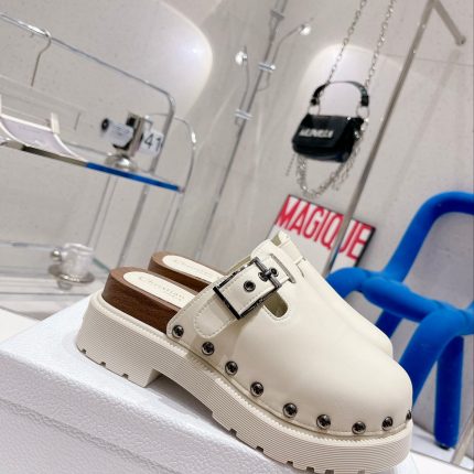 Diorquake 木底鞋由 Maria Grazia Chiuri 设计,以品牌的高级定制精神重新诠释了这款永恒鞋履。鞋面配有刻有“DIOR”字样的搭扣带以及银色铆钉细节。混合鞋底饰有“Christian Dior Paris”标志。这款木底鞋可搭配高筒袜,打造现代造型。