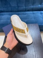 Dior Aqua 凉鞋突出了 1967 年首次推出的标志性 House 图案。采用米色和黑色 Dior Oblique 提花面料制成,饰有“ DIOR 标志搭配黑色凹口橡胶鞋底。凉鞋可搭配百慕大短裤或牛仔裤。