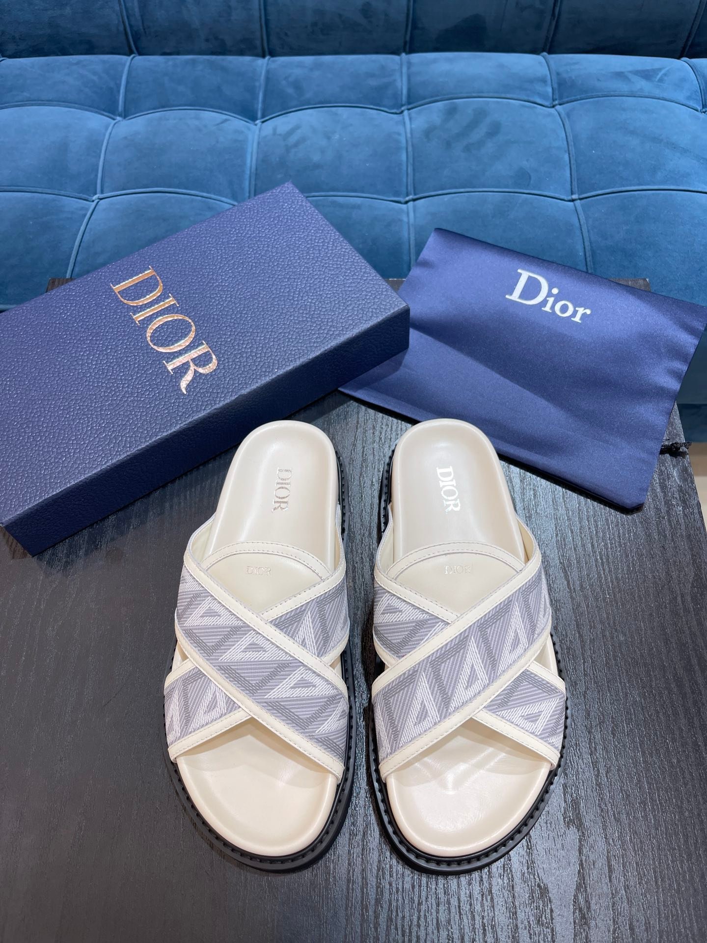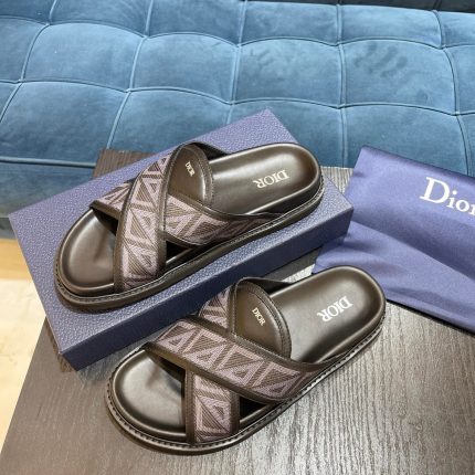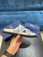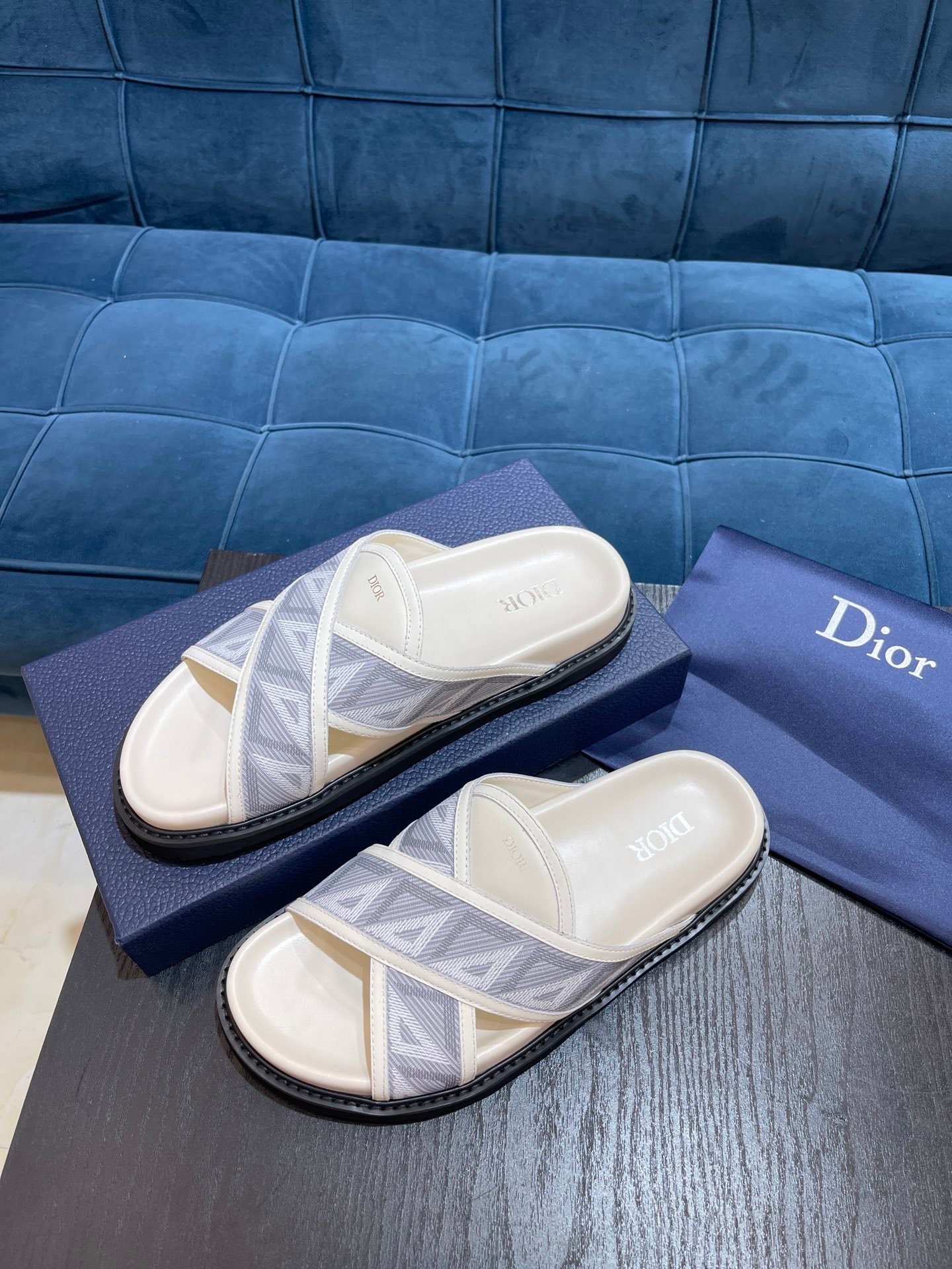 Dior Aqua 凉鞋突出了 1967 年首次推出的标志性 House 图案。采用米色和黑色 Dior Oblique 提花面料制成,饰有“ DIOR 标志搭配黑色凹口橡胶鞋底。凉鞋可搭配百慕大短裤或牛仔裤。