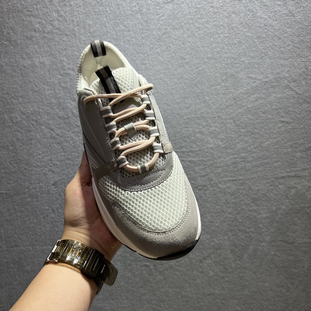 B22 运动鞋通过复古镜头重塑了厚实的运动鞋。它结合了不同的材料和纹理,包括光滑和白色的技术网布,具有大胆的运动风格美感。圆形鞋带和侧面凸起的“DIOR”标志与厚实的白色雕刻橡胶鞋底相得益彰。该运动鞋可搭配任何休闲服装,打造运动感和现代感的廓形。