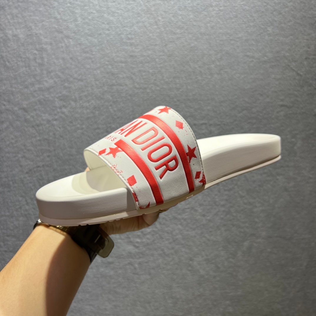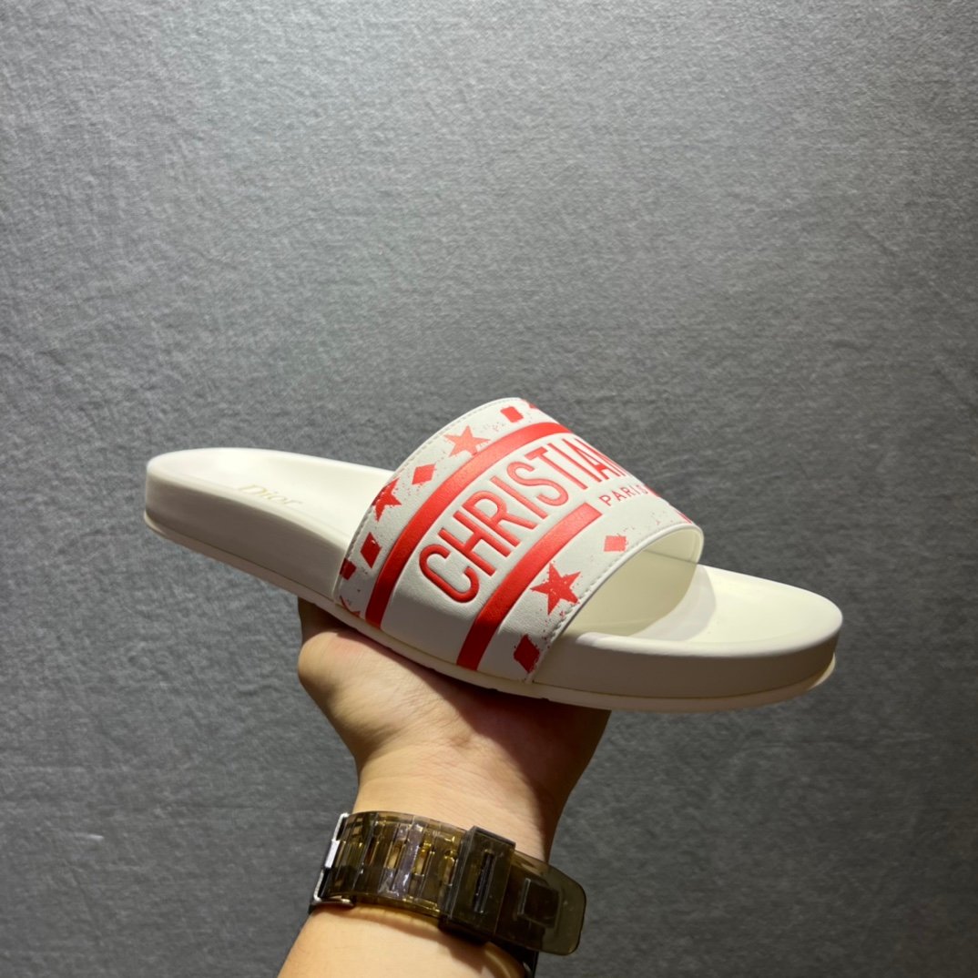 Christian Dior Dway 拖鞋白色/红色男士 CD