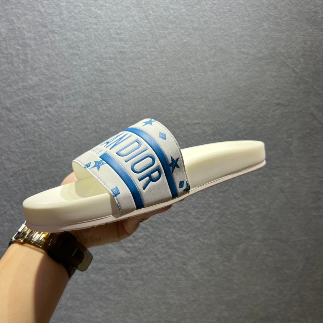 Christian Dior Dway 拖鞋白色/蓝色男士 CD