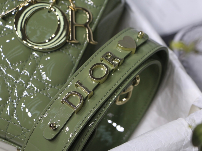 - 详细介绍:此款 Lady Dior 手袋体现了Dior先生对优雅与美丽的真知灼见。时尚柔美的手袋彰显经典而又现代的气质。该手袋采用牛油果绿漆皮牛皮革精制而成,标志性的经典藤格纹图案,尽显精良的缝制工艺。浅金色的标志性“D.I.O.R.”吊饰彰显别致韵味。其肩带最多可添加 6 枚徽章,满足个性化的需求。