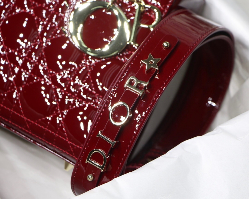 - 详细介绍:此款 Lady Dior 手袋体现了Dior先生对优雅与美丽的真知灼见。时尚柔美的手袋彰显经典而又现代的气质。该手袋采用樱桃红漆皮牛皮革精制而成,标志性的经典藤格纹图案,尽显精良的缝制工艺。浅金色的标志性“D.I.O.R.”吊饰彰显别致韵味。其肩带最多可添加 6 枚徽章,满足个性化的需求。