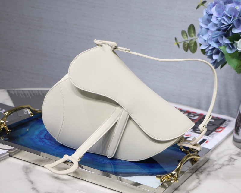 - M0446 Dior Saddle哑光牛皮革手袋 迪奥官网女包马鞍包 奶白色