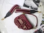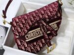 - M0446 Dior Saddle马鞍包 Dior Oblique 绣花丝绒 酒红色