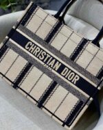 - M1296 Dior Book Tote 小号手袋 黑米色Bayadere 刺绣