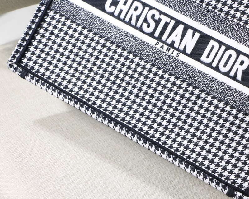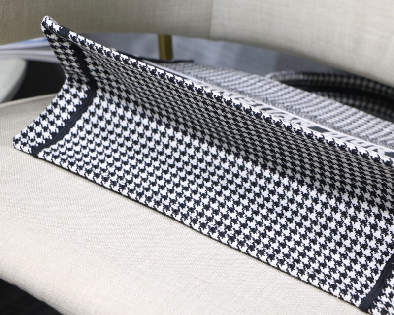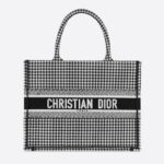 - M1296 Dior Book Tote 小号手袋 黑白千鸟格刺绣