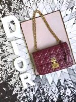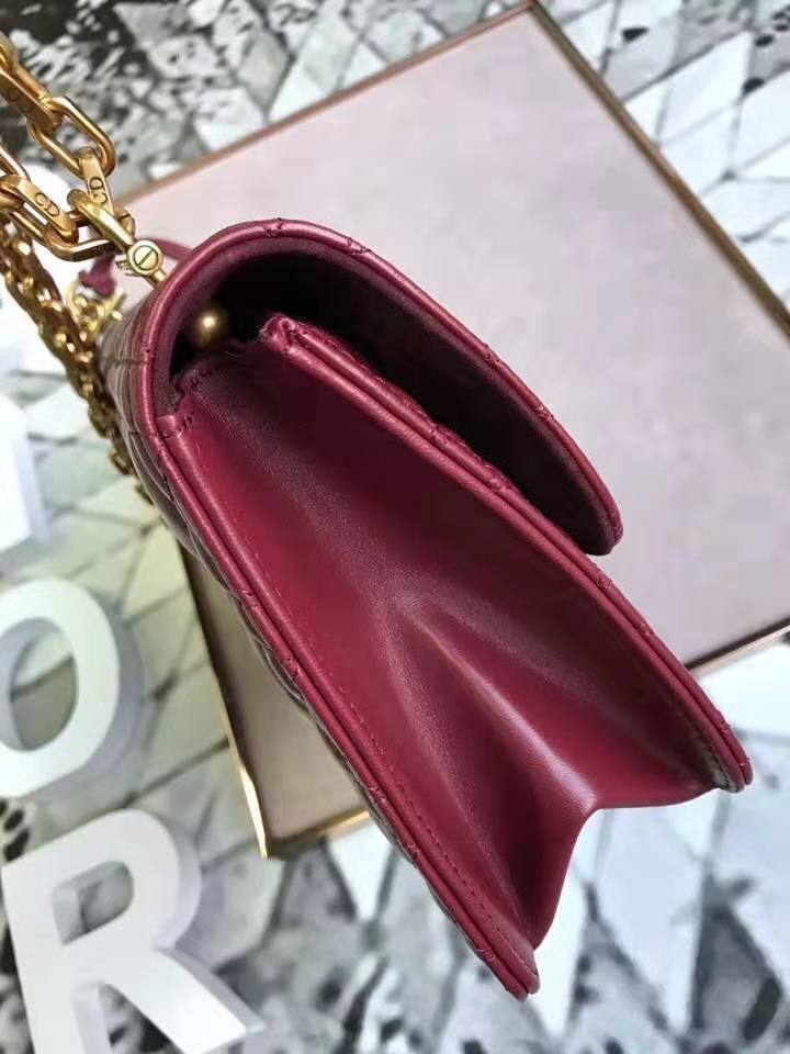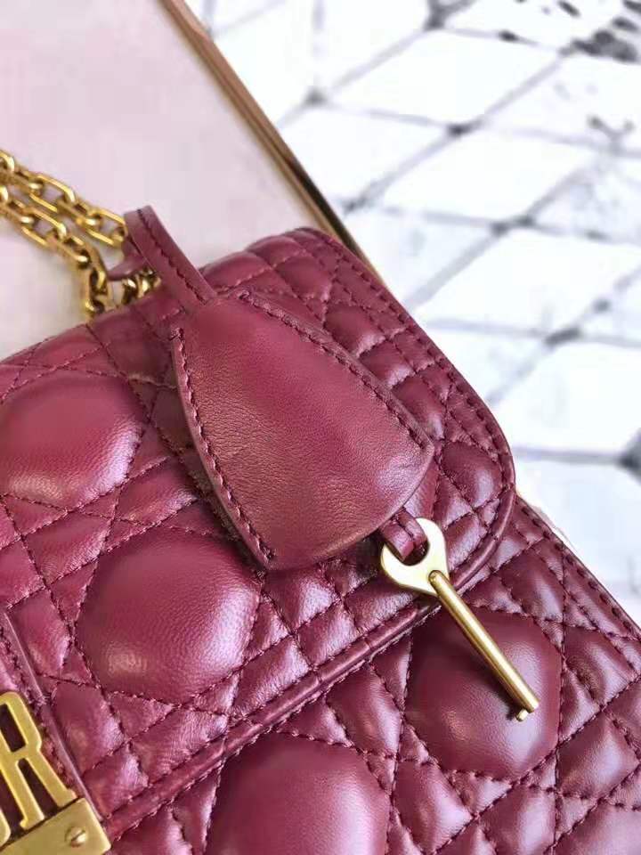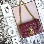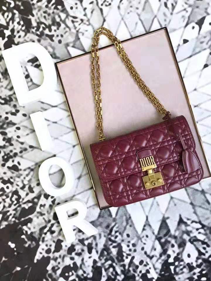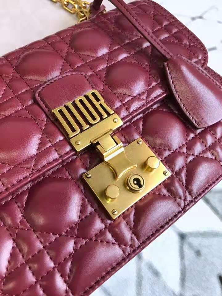 - M5818 Dior Addict女包 小羊皮 藤格纹 翻盖式 迪奥手提包 枣红色