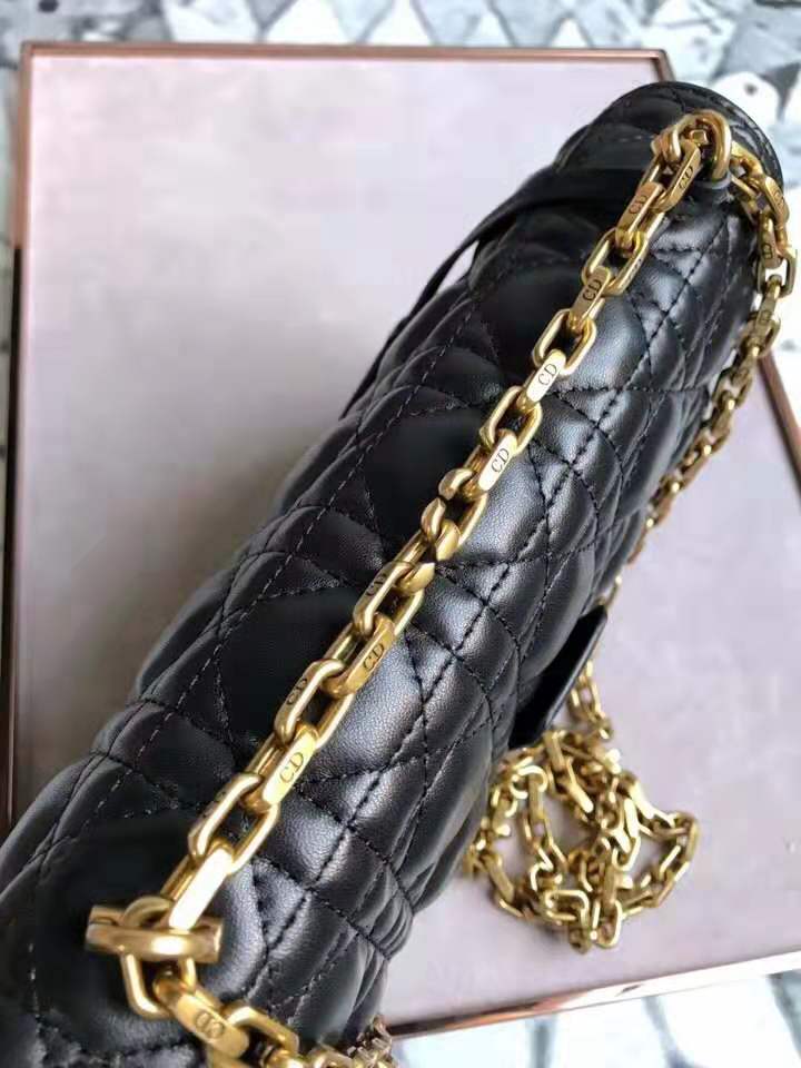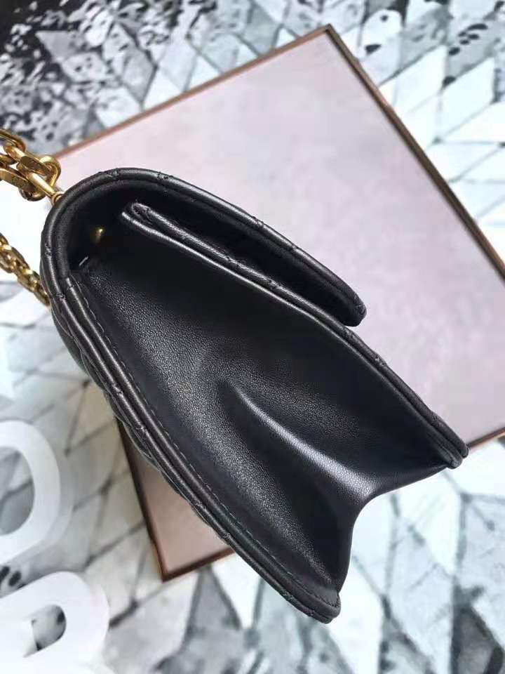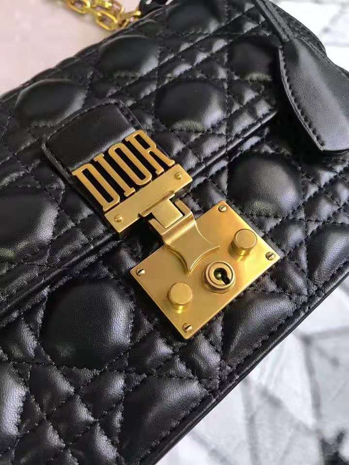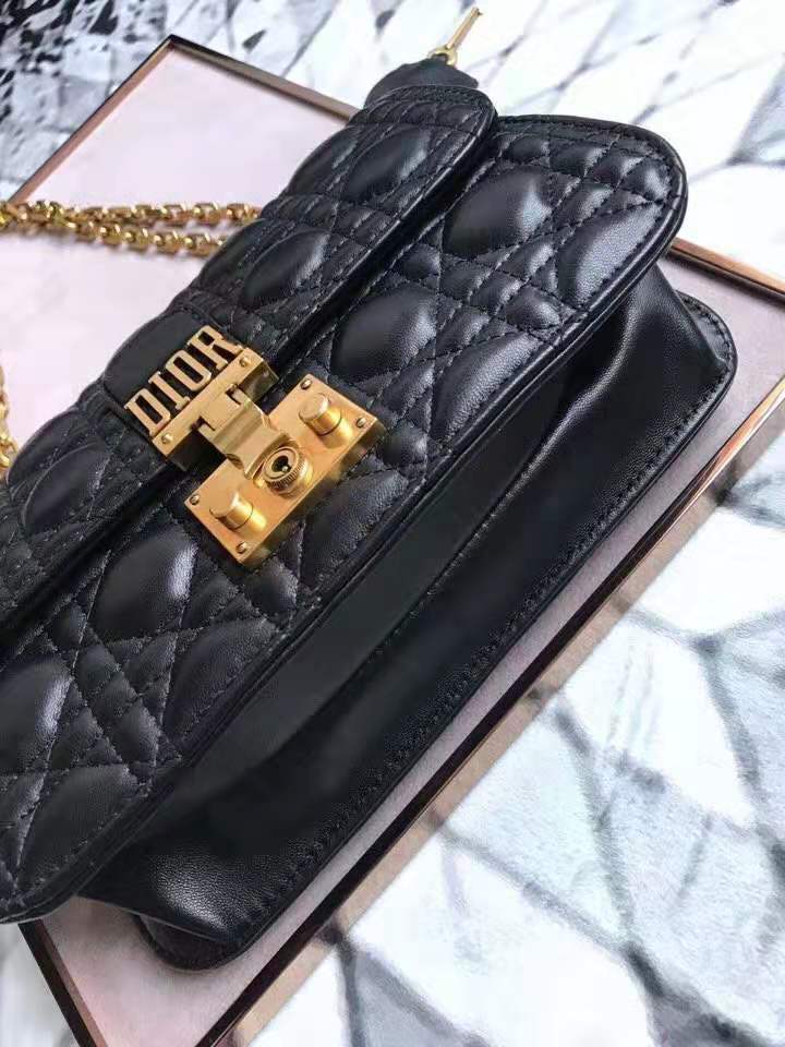 - M5818 Dior Addict女包 小羊皮 藤格纹 翻盖式 迪奥手提包 黑色