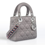 - M932 迪奥 Dior LADY DIOR 灰色小羊皮袖珍手提包 刺绣肩背带 银色配饰