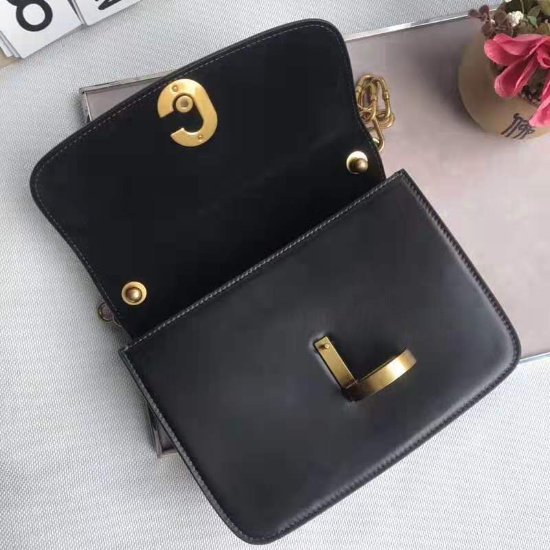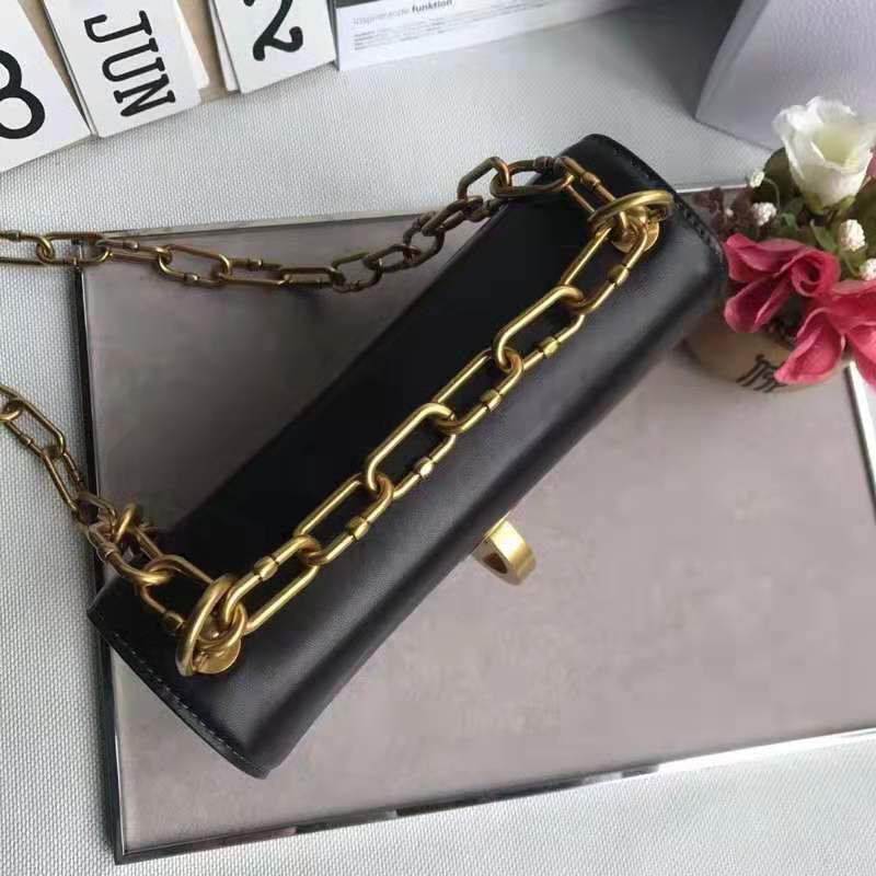 - 结构:标志锁扣,可拆卸链带 ,复古金色金属配饰,可肩背或斜挎