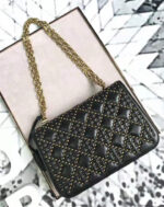 - M5819 Dior Addict柳钉包 藤格纹铆钉 翻盖链条 迪奥小方包 黑色