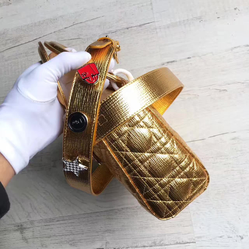 - Dior LADY DIOR小羊皮手提包 2017新款迪奥徽章戴妃包 金色