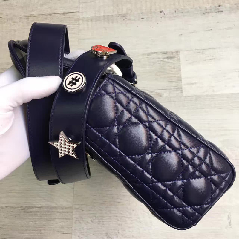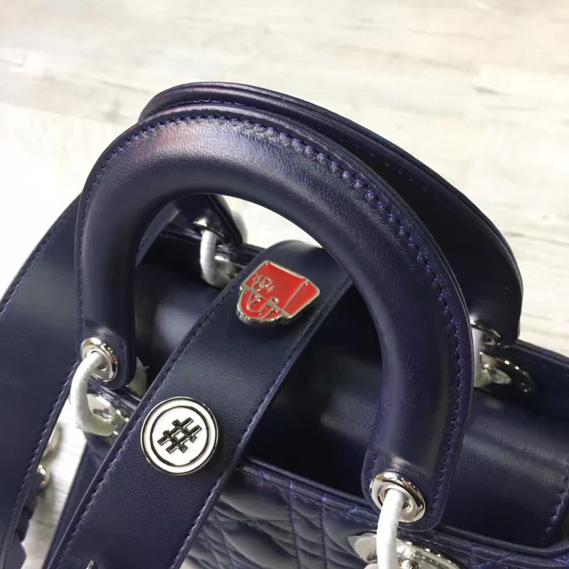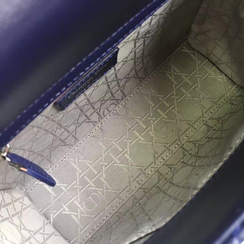 - Dior LADY DIOR小羊皮手提包 2017新款迪奥徽章戴妃包 蓝色