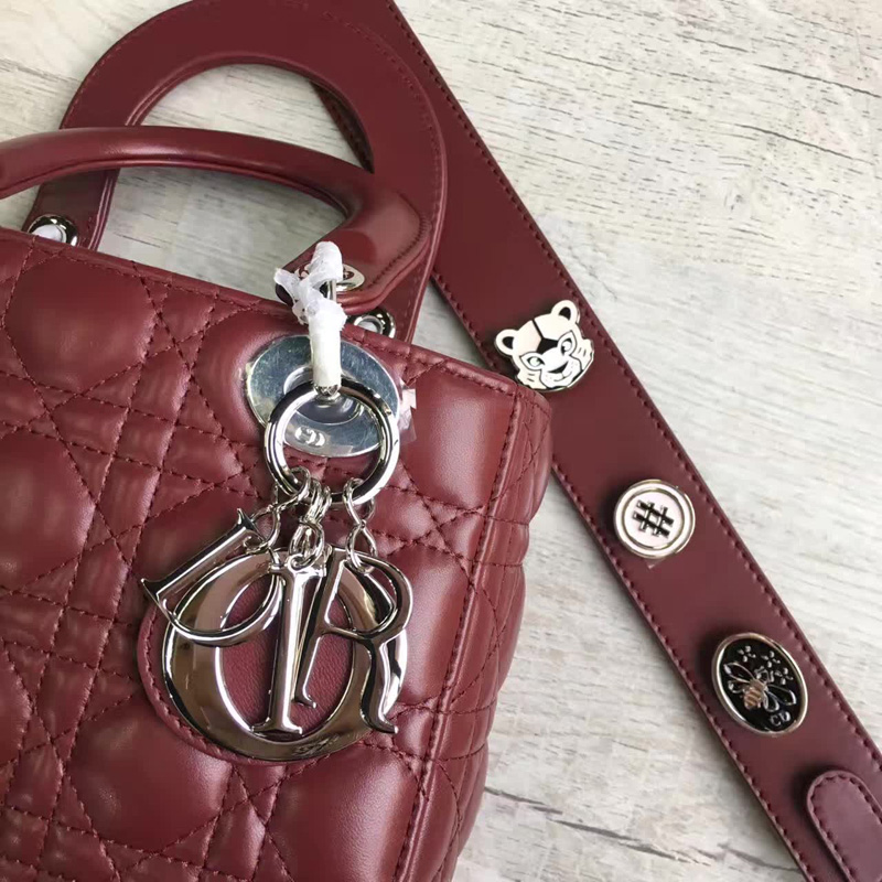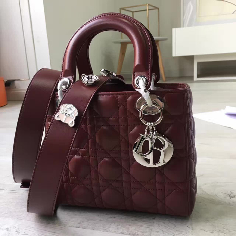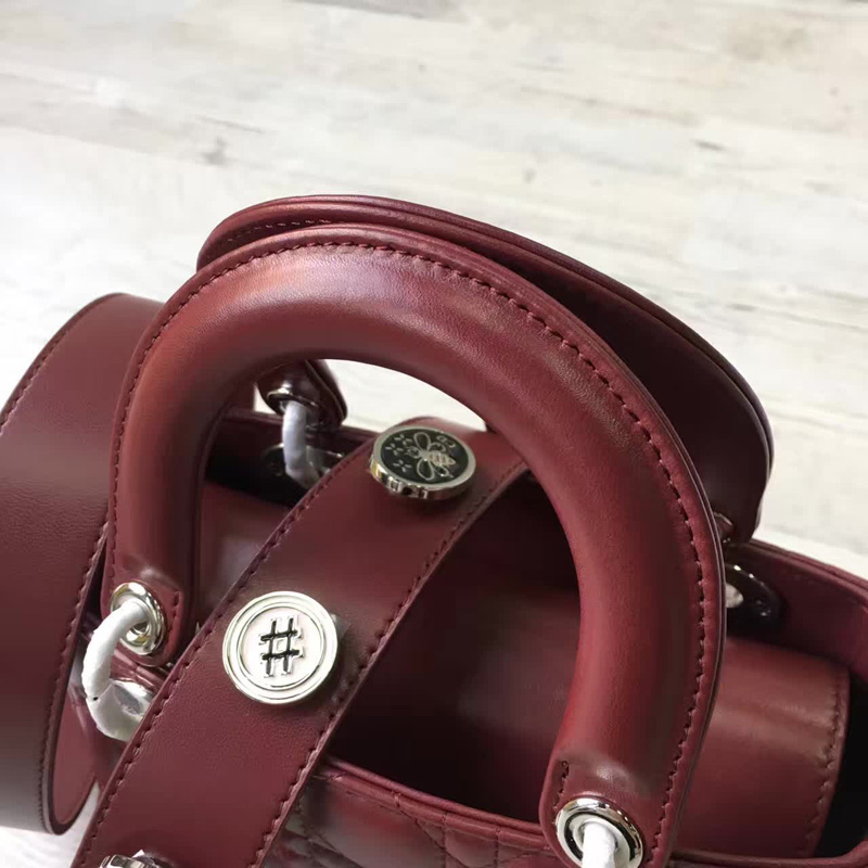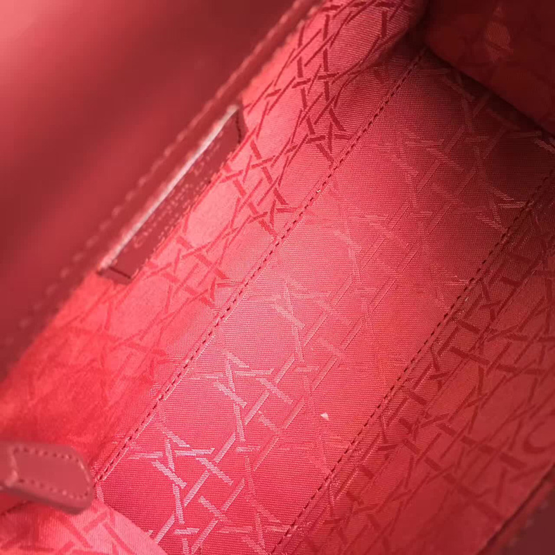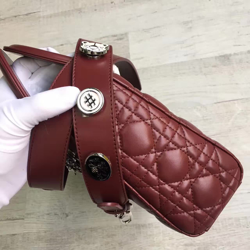 - Dior LADY DIOR小羊皮手提包 2017新款迪奥徽章戴妃包 枣红色