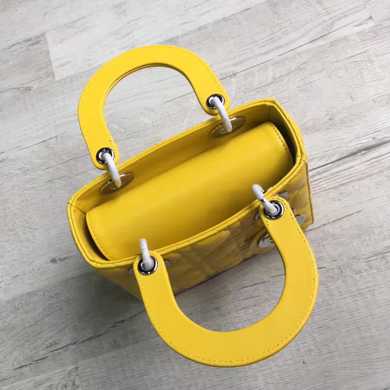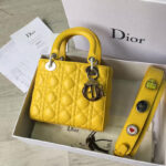 - Dior LADY DIOR小羊皮手提包 2017新款迪奥徽章戴妃包 黄色