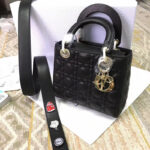 - 详细介绍:这款“Lady Dior”“Cannage”藤格纹缝线黑色小羊皮手提包可为肩背带作个性化装饰。可从以Dior迪奥经典元素为设计灵感的Lucky Badges幸运徽章中挑选您喜爱的款式,并按每天的心情将徽章装饰在Lady Dior手提包的肩背带上。