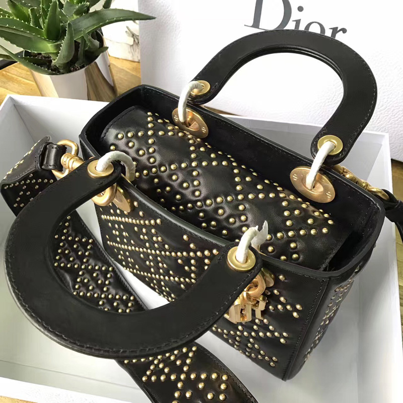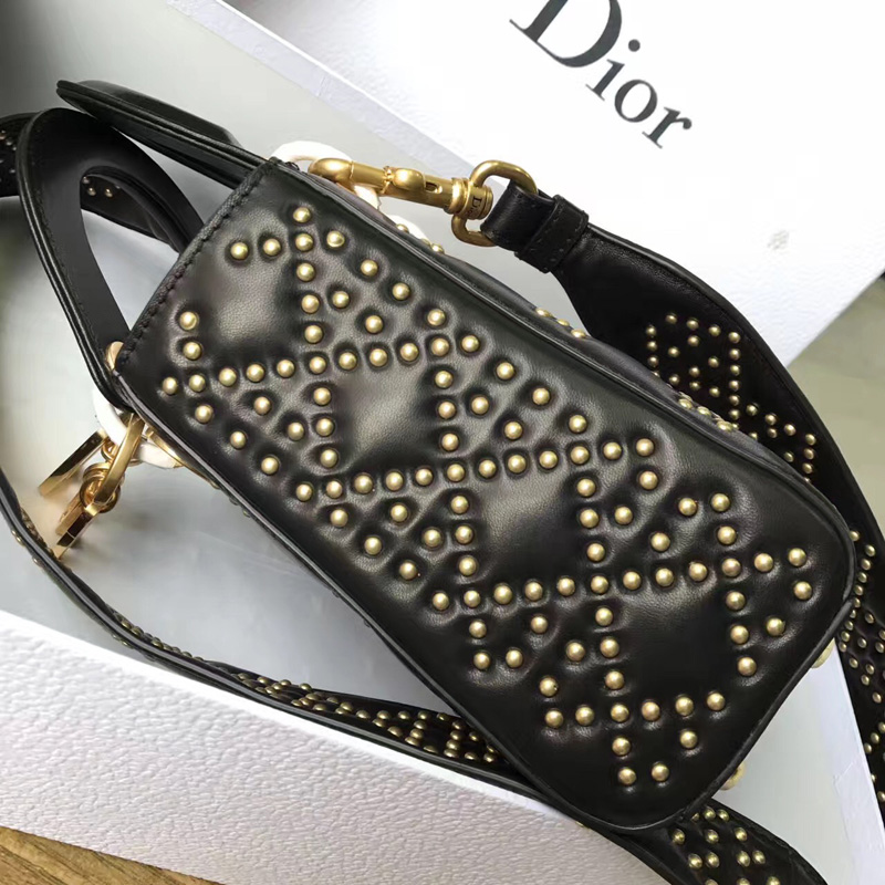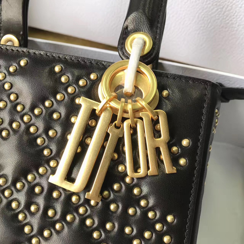 - M0579 Dior迪奥 LADY DIOR黑色小牛皮柔软手提包 饰钉手提单肩包