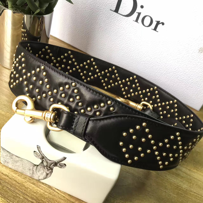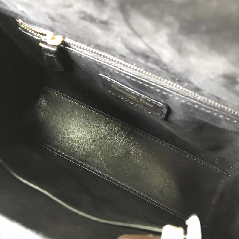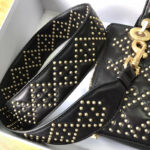 - 结构:Lady Dior黑色小牛皮柔软手提包,缀以饰钉Cannage经典藤格纹图案“D.I.O.R”吊饰复古金色金属配饰宽肩背带斜挎与手提两用