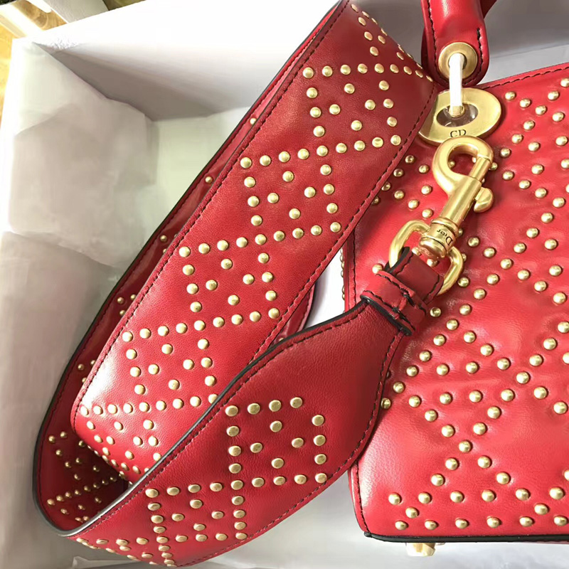 - M0579 Dior迪奥 LADY DIOR红色小牛皮柔软手提包 饰钉手提单肩包
