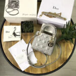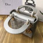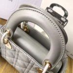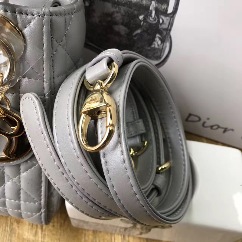 • Dior迪奥 Lady Dior 经典迪奥戴妃包 Mini三格 灰色羊皮 Dior链条包 金扣