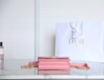 - S5169 迪奥Dior Miss Caro 迷你链条手袋 羊皮革超大藤格纹 粉色