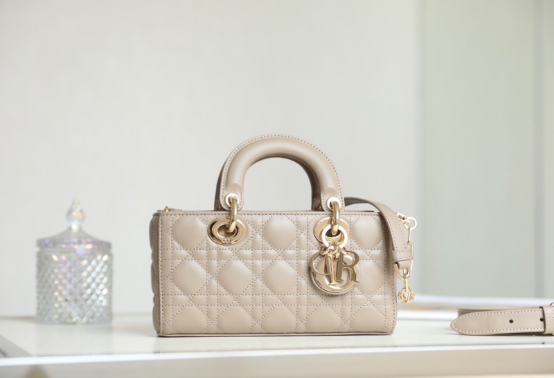 - M0613 迪奥Dior Lady D-Joy 小号手袋横版戴妃包 羊皮革藤格纹 杏色