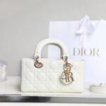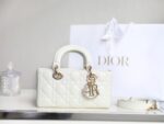 - M0613 迪奥Dior Lady D-Joy 小号手袋横版戴妃包 羊皮革藤格纹 奶白色