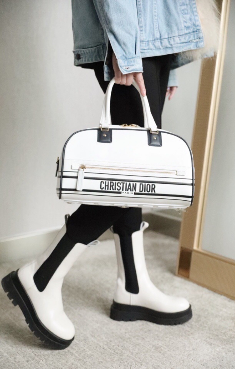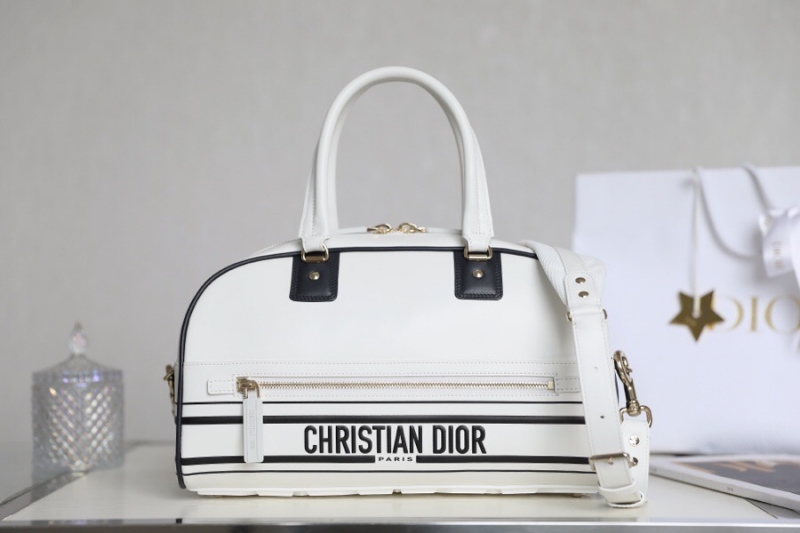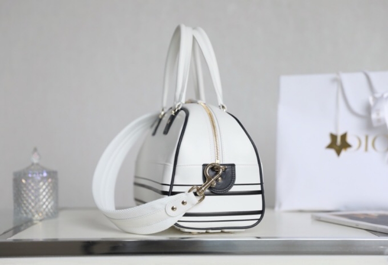 - M6202 迪奥DIOR VIBE BOWLING 拉链手袋中号 光滑牛皮保龄球包 白色