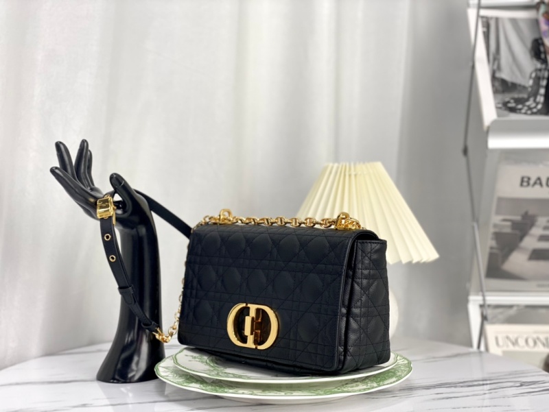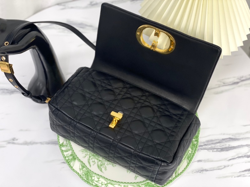 - M9242 迪奥DIOR CARO 中号手袋 柔软牛皮革藤格纹 黑色